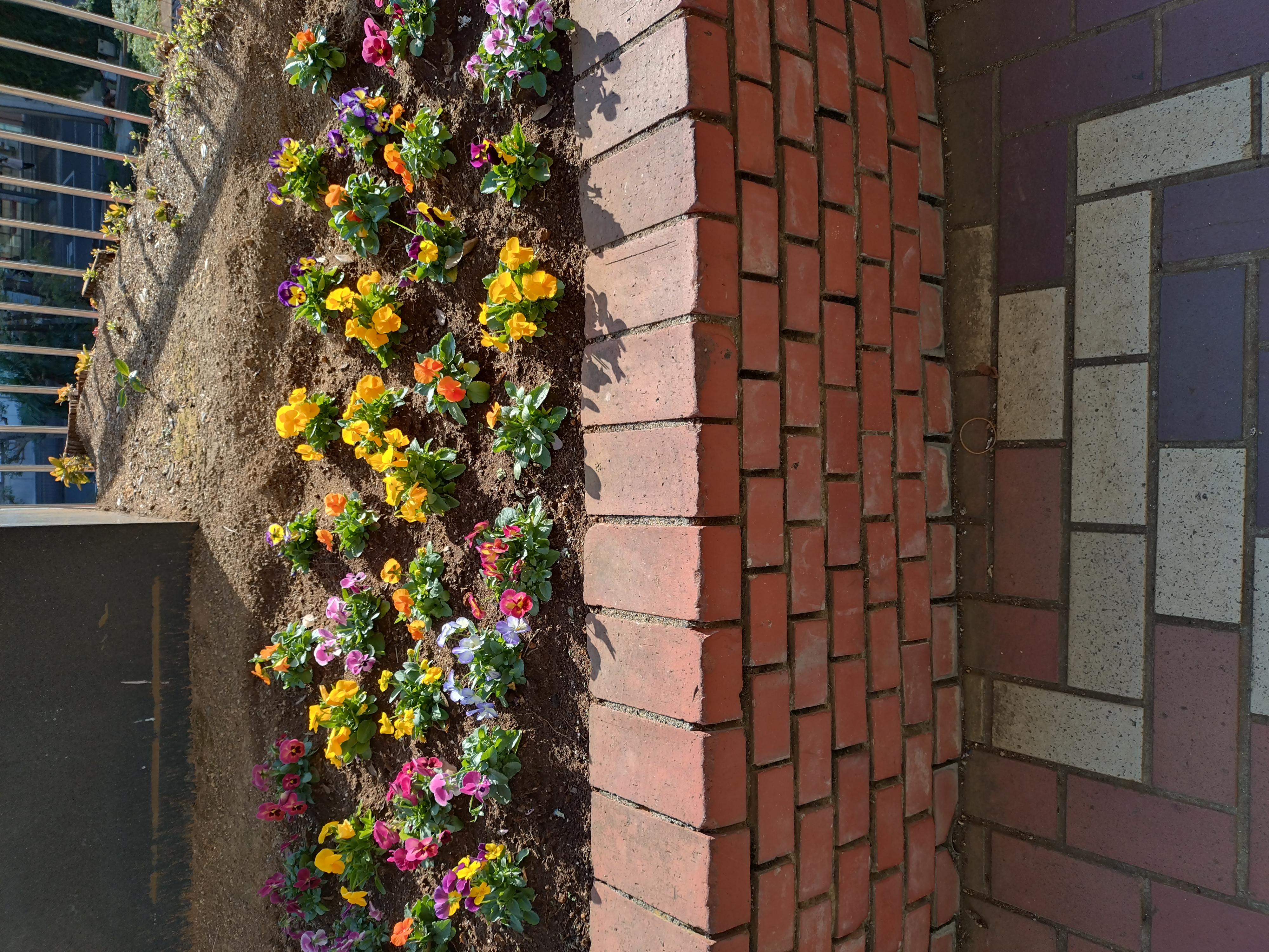 色とりどりのパンジーが植えられて、キレイに咲いていました。