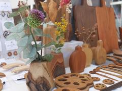 山桜の木、アメリカンチェリーの木、クルミの木など様々な木のトレーを初め、アクセサリーなどがありました。