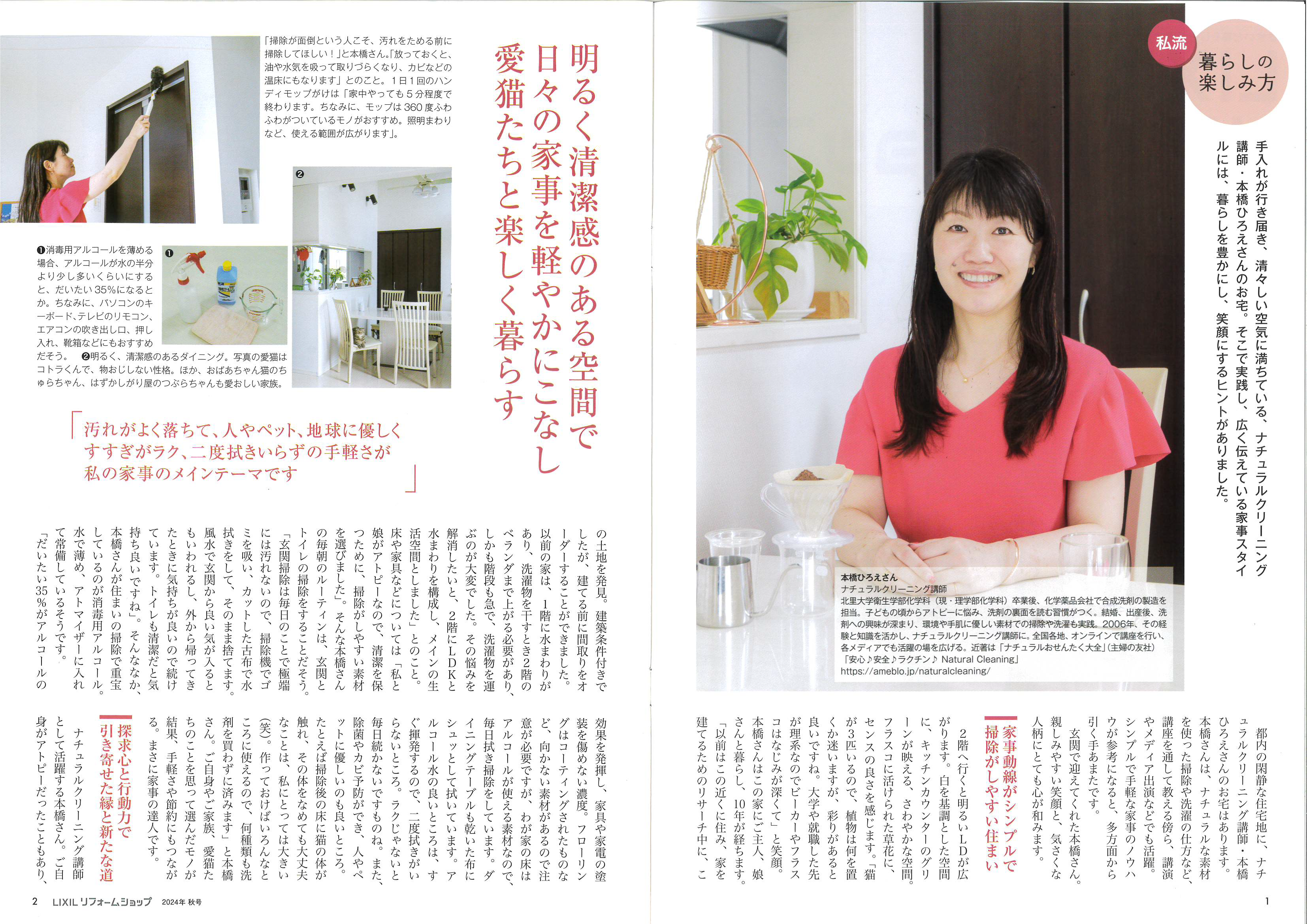 ナチュラルクリーニング講師の本橋ひろえさんの記事には「暮らしを豊かにし、笑顔にするヒント」が満載。