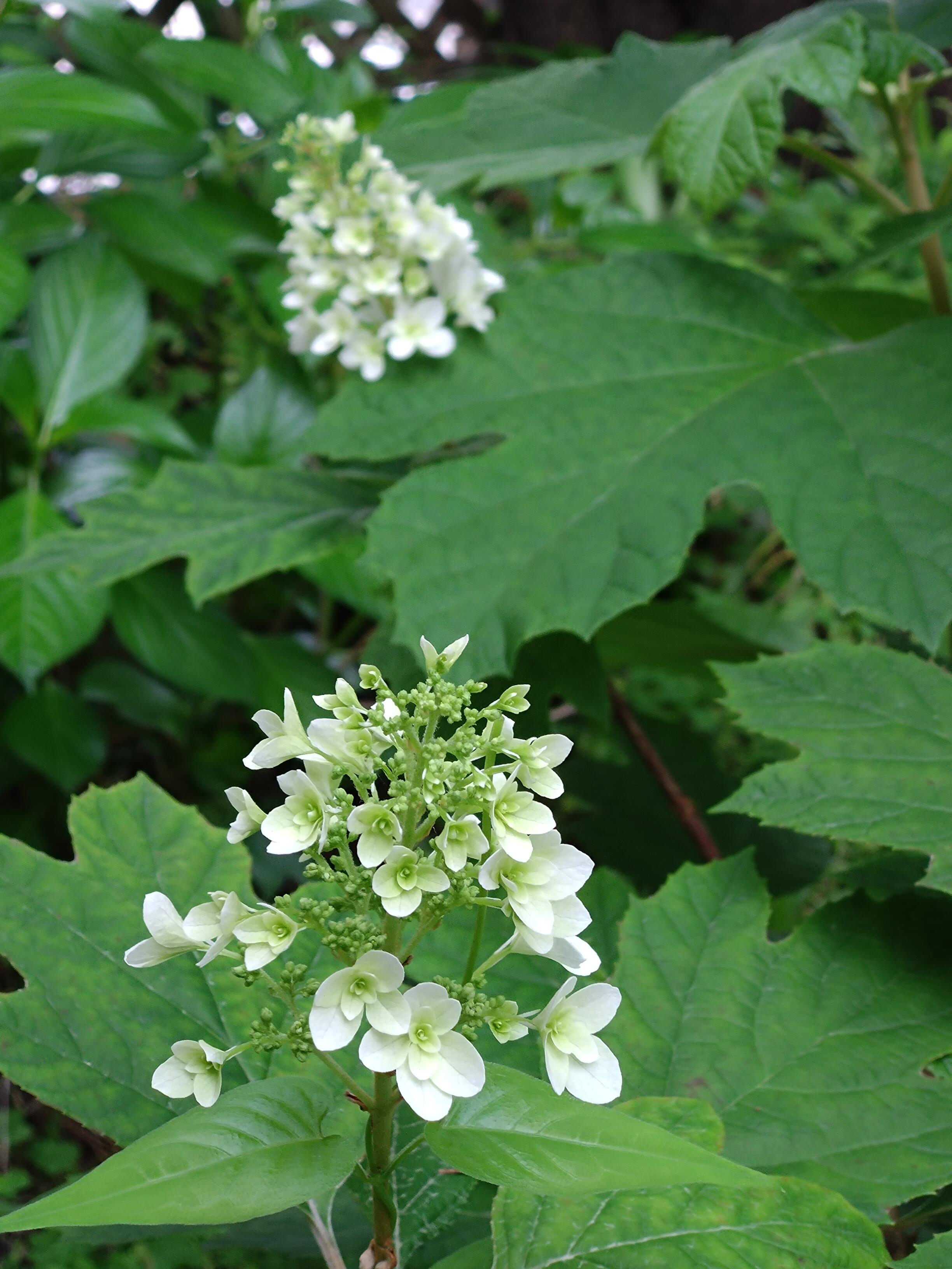 「柏葉あじさい」はアメリカ原産のアジサイで、アメリカ南東部のルイジアナ州、テネシー州、ノースカロライナ州、サウスカロライナ州、アラバマ州、フロリダ州に自生します。