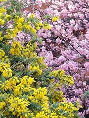 この神社はミモザと早咲きの桜で有名とのこと。