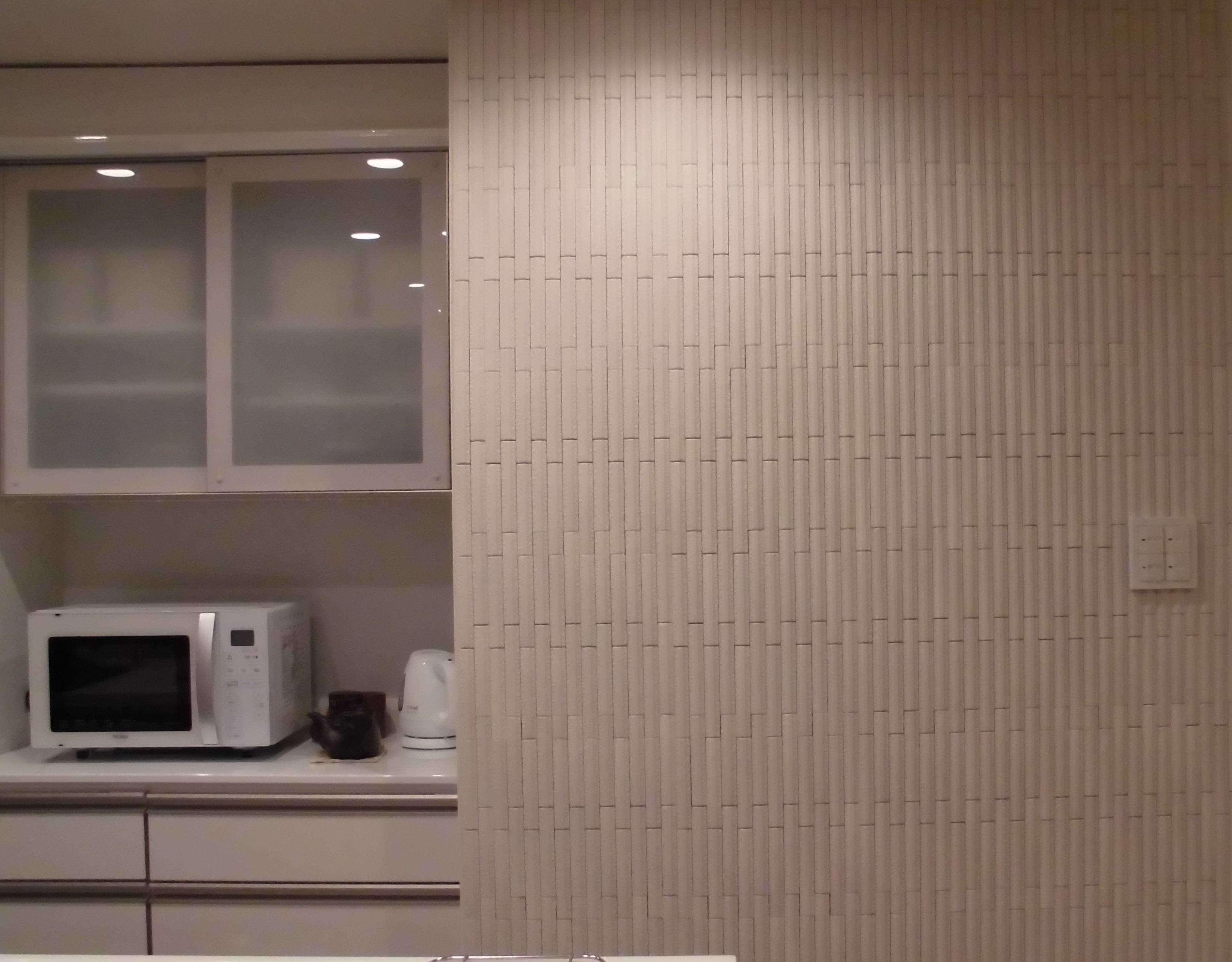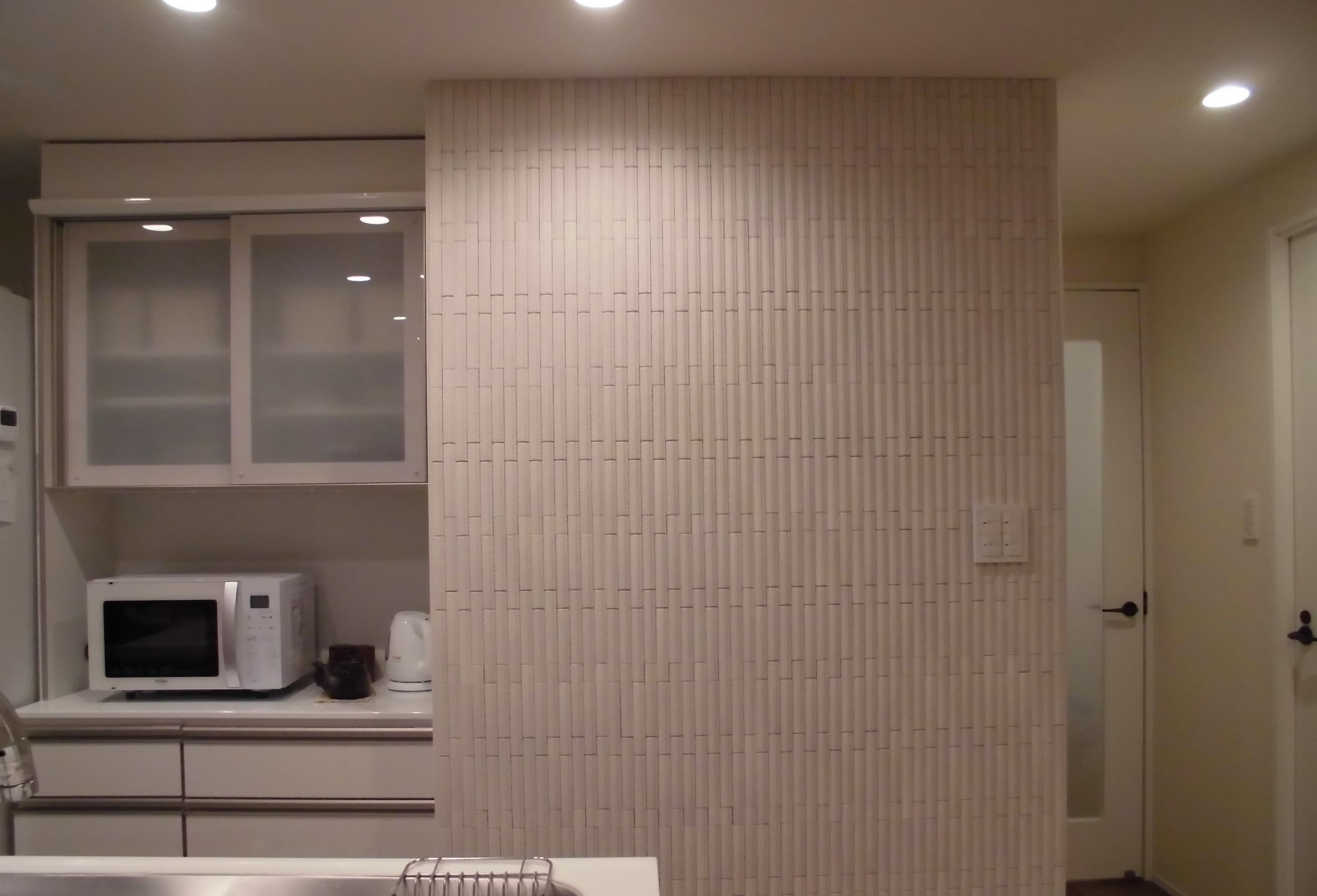 「細かいエコカラットを貼ることでキッチンのアクセントになり、結果的に良かったです。やはりエコカラットを貼ったら、玄関のドアを開けた時の”家のニオイ”がなくなり満足しています。」とのご感想をいただきました。