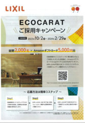 対象期間中にエコカラットを1棟合算6㎡以上ご採用いただいたお客様に、Amazonギフトカード(E-mailタイプ)5000円分をプレゼント。