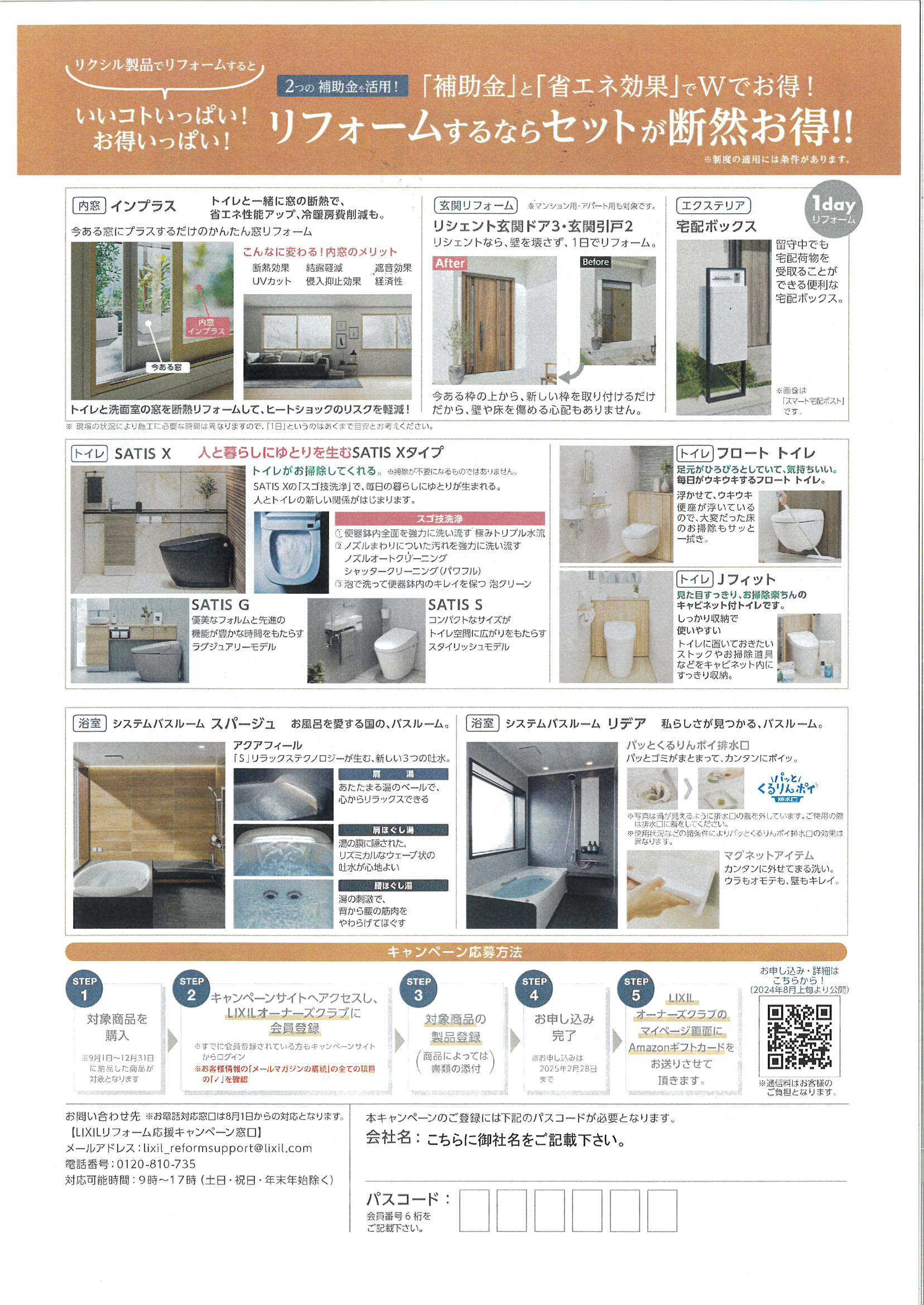 お問合せは「LIXILリフォーム応援キャンペーン窓口」