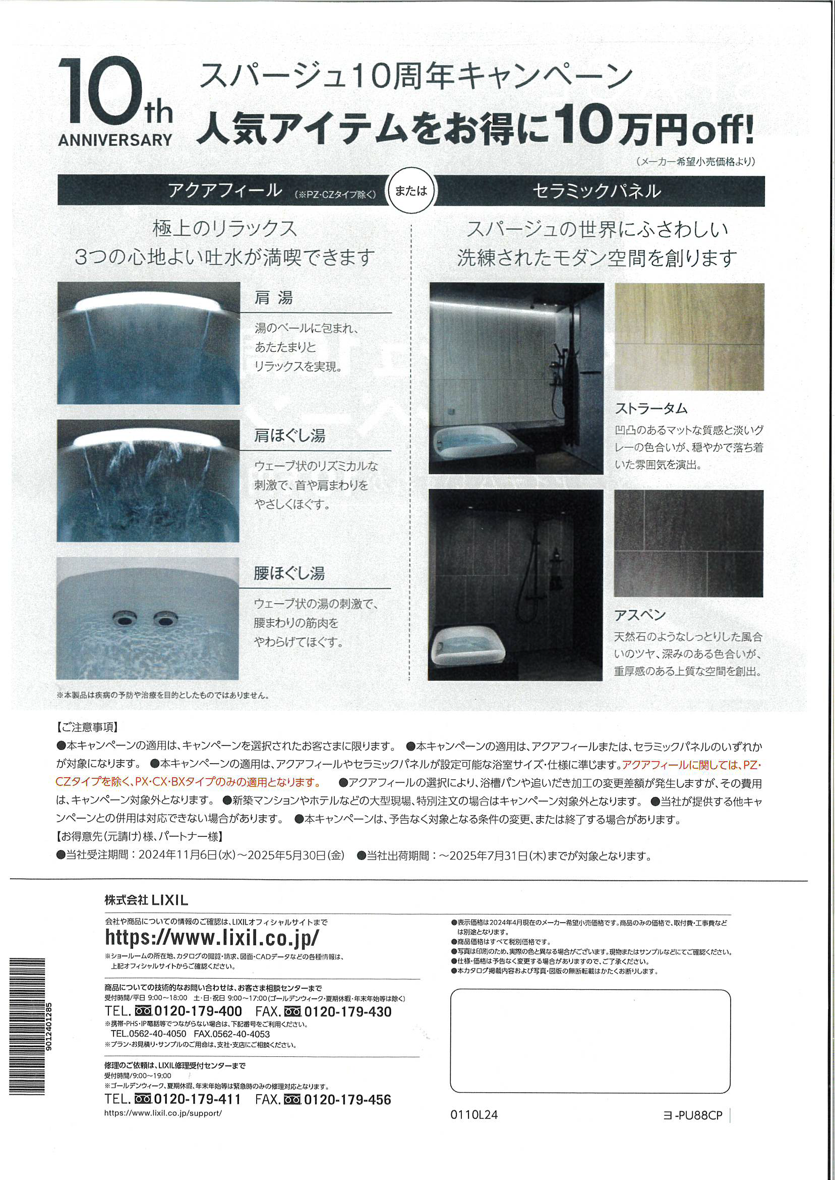 LIXILの浴槽「スパージュ10周年キャンペーン」