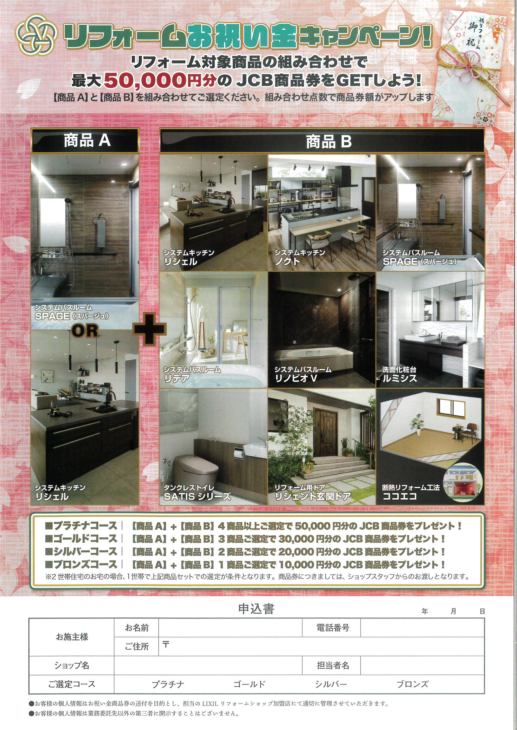 申し込み方法:LIXILのショールームへ来館➡リフォーム対象商品をお見積り➡お申込み。