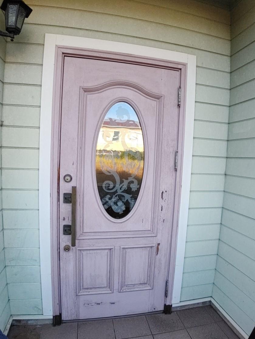 玄関ドアのリフォームです 既存ドアは輸入住宅ならではの木製の玄関ドアでした 定期的にしっかりとメンテナンスをされて大切に使われていましたが、 ドアが膨張し開閉が難しくなり交換ご希望との事でした。 木目調のカラーとアイアンの面格子が建物の雰囲気にピッタリでした!
