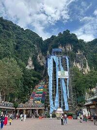 まず有名な「バトゥ洞窟」へGrab(配車アプリ)で向かいました。がなんとシンボルのムルガン神像が