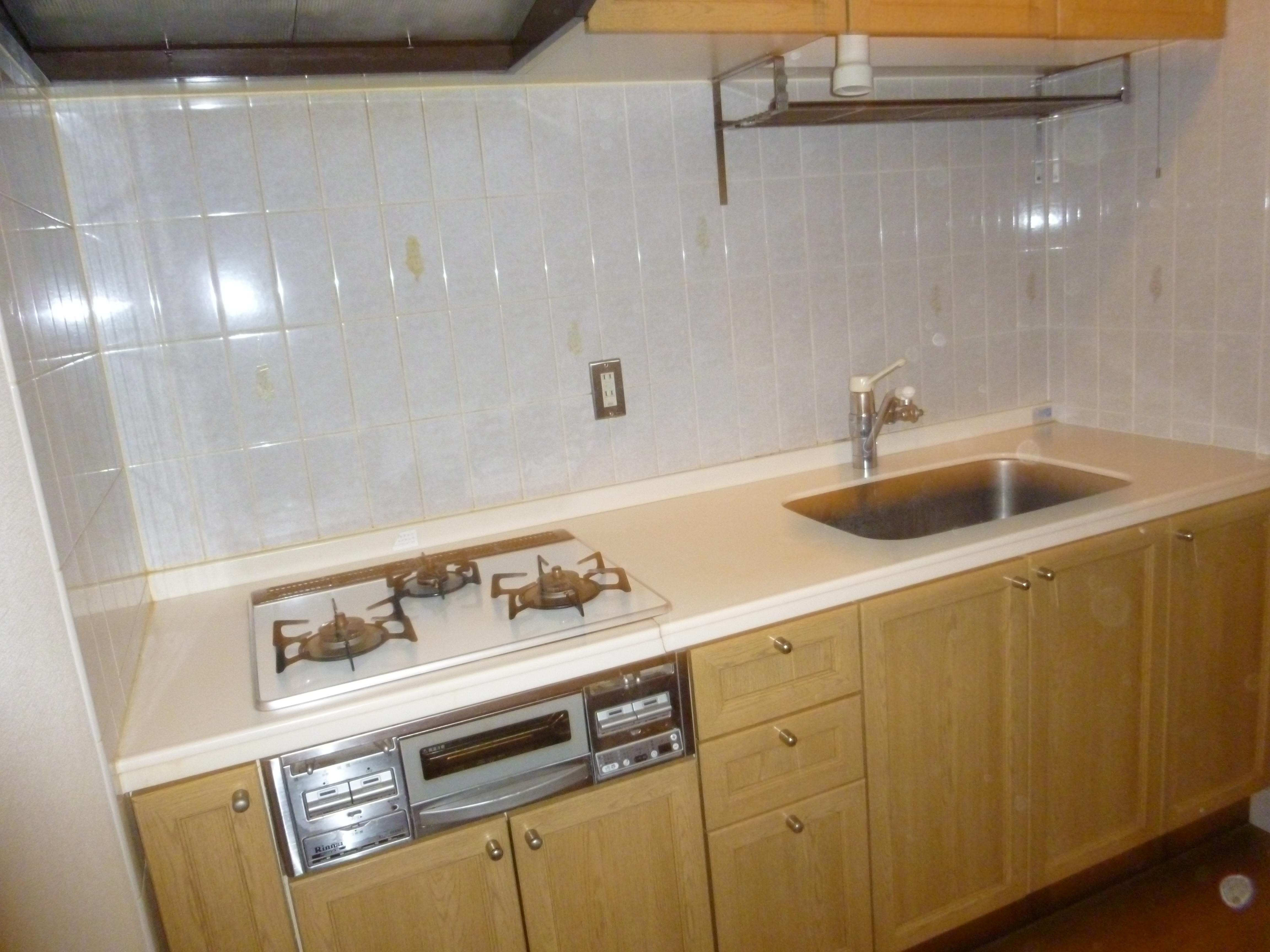 「LIXIL ファミリーライン パレット」の扉と無垢材の相性も良く、キッチンの扉も揃える事によって統一感が生まれています。