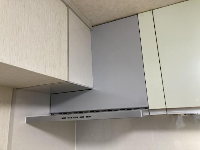 大きな梁があるので、既存と同じようなレンジフードしかつかないとあきらめていらっしゃいましたが、機械の高さが21cmと低いLERシリーズのレンジフードを入れる事ができました! ファンはワンタッチで着脱可能、フィルターレスでなかまでフラット、お手入れ簡単です。