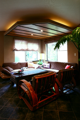 二重天井にし、やわらかな光が広がる間接照明にしたリビング。