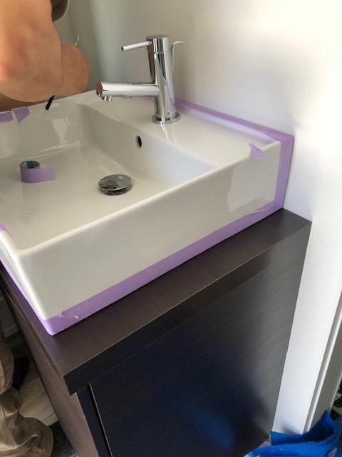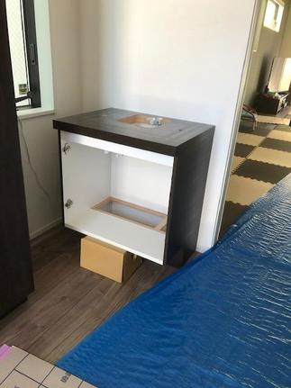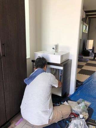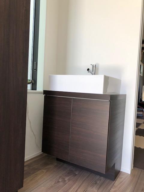 2階に洗面所があり不便なことと、コロナ対応にて1階玄関に洗面台の設置を希望されての工事となりました。