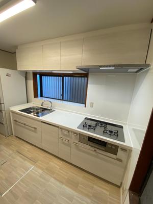 新たに設置したキッチンは「リシェル24」、 キッチン収納は「ノクト22」