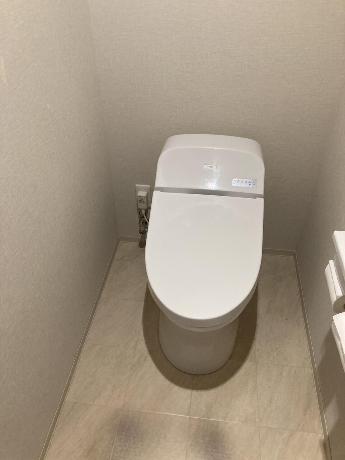 集合住宅のトイレリフォーム【サティスX】編です。 クッションフロアもダークカラーで高級感のある空間に。