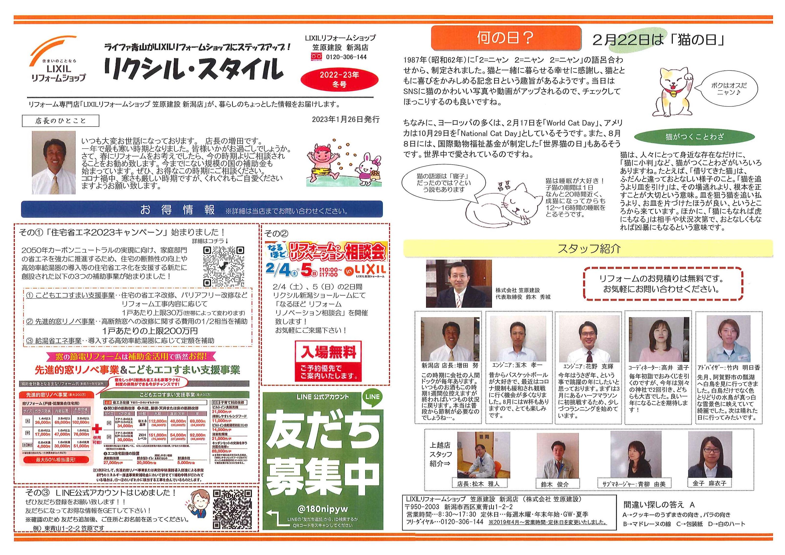 ニュースレター「リクシル・スタイル 2022-23冬号」が完成しました!!