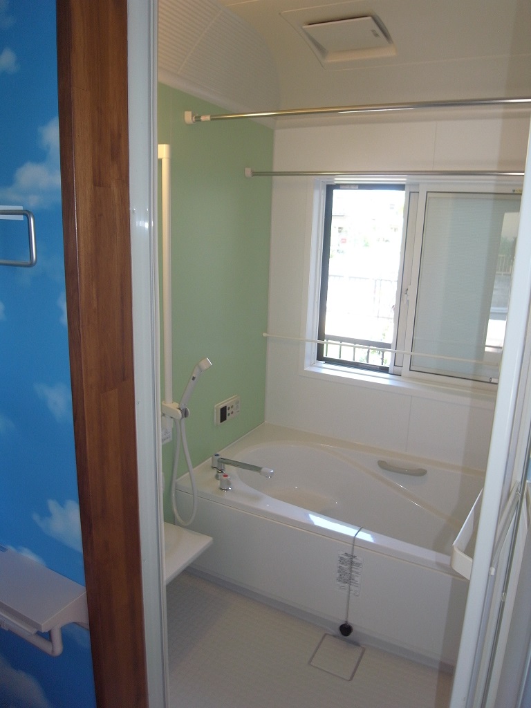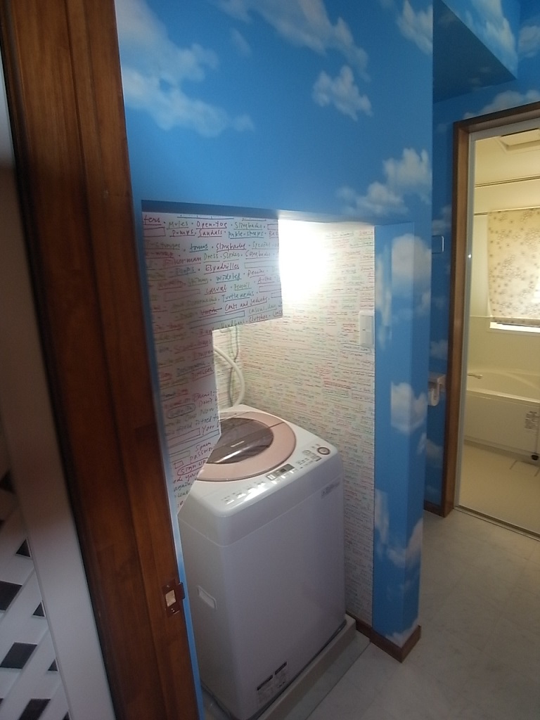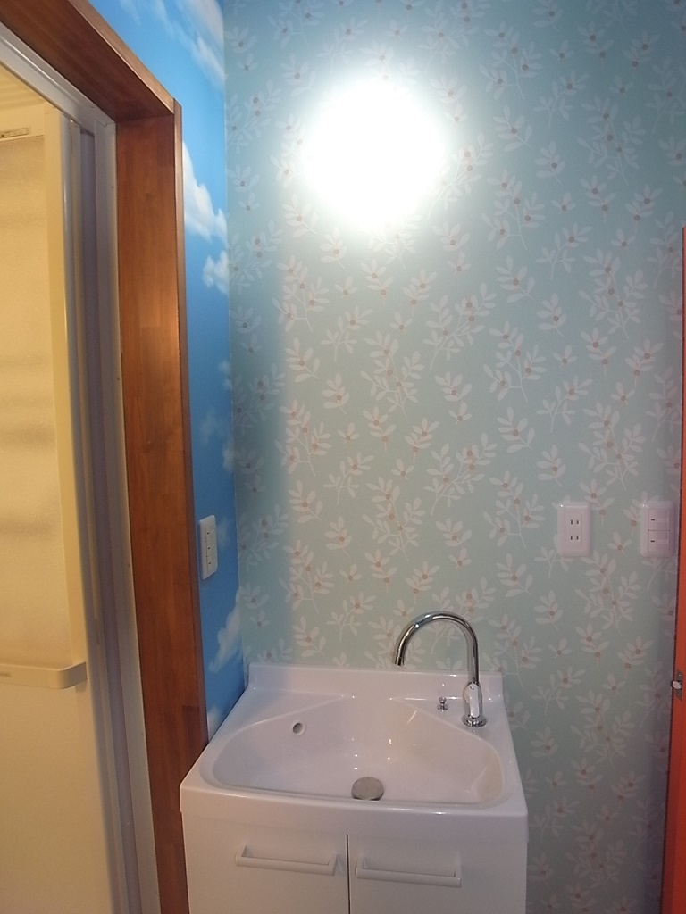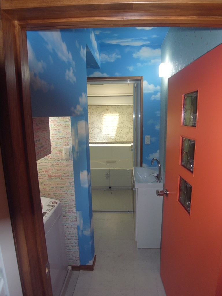 コンパクトな造りの戸建住宅で、浴室・洗面・トイレの水まわりはホテルのようなワンルームになっていました。ちゃんとした脱衣所も無く浴室とトイレの境は多少の段差はあるものの、非常に使いづらく不便で掃除も大変でした。増築など大掛かりな間取りの変更は出来なかったため、洗濯機の向きと入口の位置を変更し、奥様お気に入りのカラフルな内装で仕上げることによって、狭さを感じさせない明るい水まわりになりました。