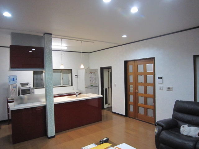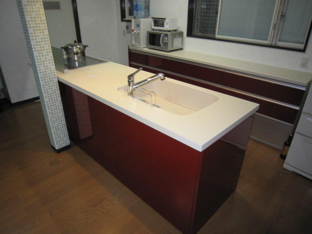 もともと壁付けのキッチンをそのまま入れ替えで検討していましたが、対面キッチンにしたいとのお母様のご希望で最終的にはアイランド型のキッチンを採用しました。構造上抜けない柱があったり、プランが決定するまで何度も細かく打ち合わせを重ねかたちにしていきました。 (担当:長谷川)