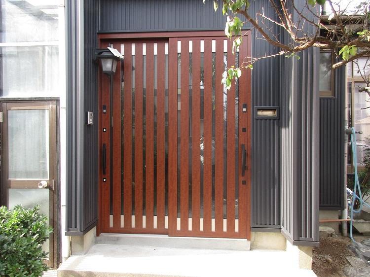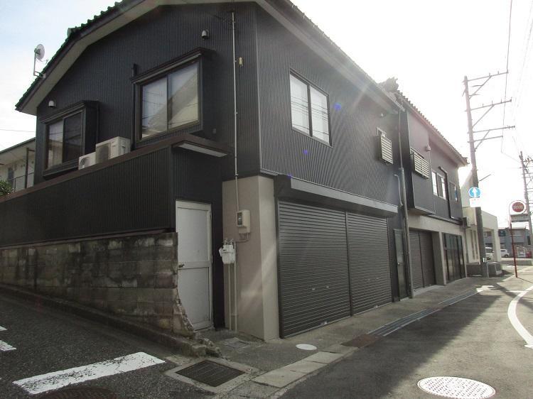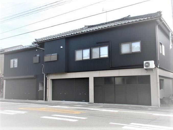 外壁・シャッター・玄関戸など外まわりのリフォームを行いました。外壁は既存を剥がさず金属サイディングを重ね張りにしたので、断熱性や防音性も向上しました。当初白っぽい外壁をご希望でしたが、実物見本やイメージパース等で打合せを重ね、最終的に黒い外壁に決定しました。イメージが変わり重厚感も出て良かったと思います。