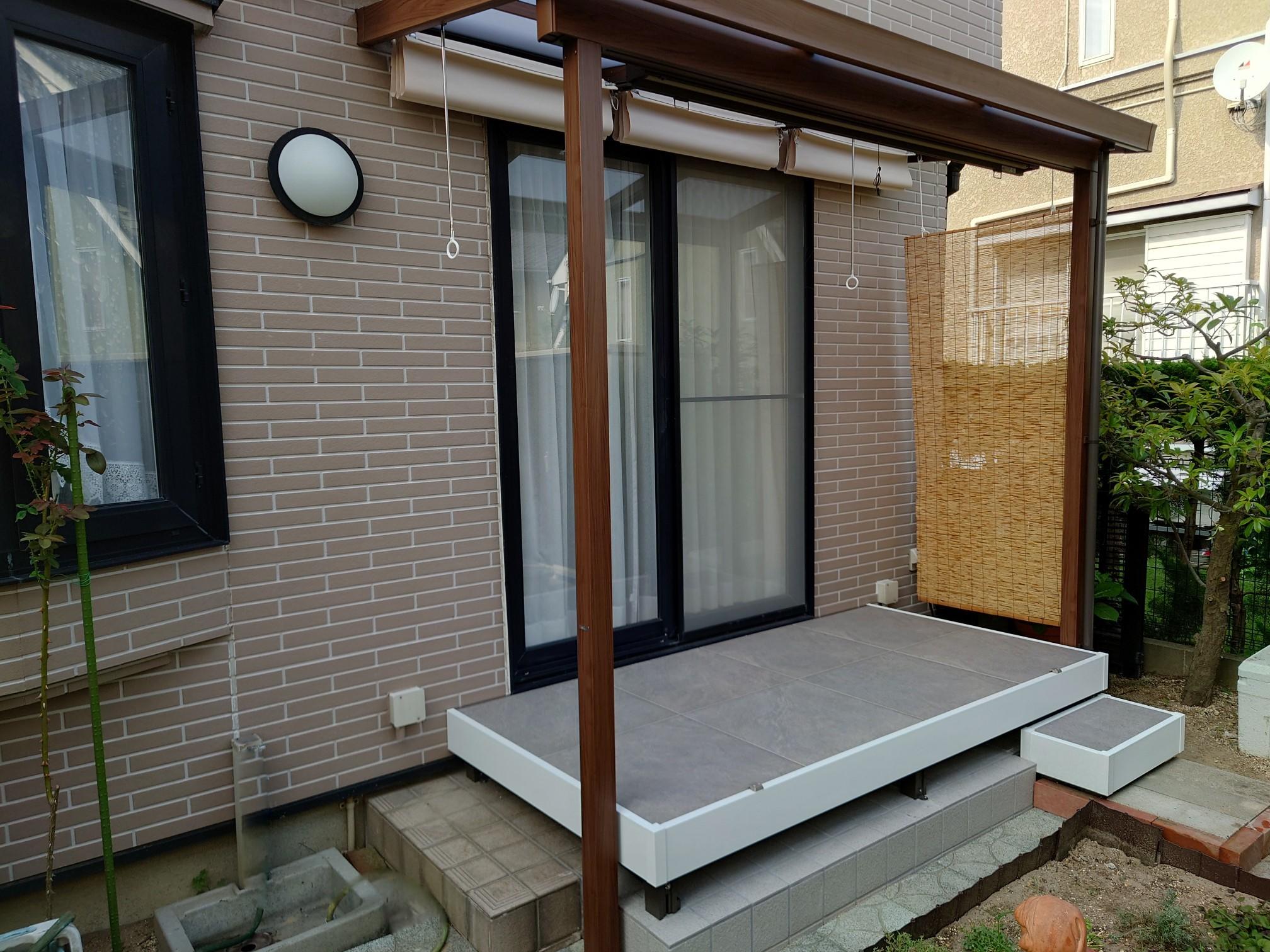 新潟市西区にお住まいのH様。いつもキレイにお庭のお手入れをされているお宅です。リビングから庭へ続くテラスをつくりたいとのご要望でした。テラスのまわりはあえて囲わず、庭と一体になるようなイメージでご提案しました。