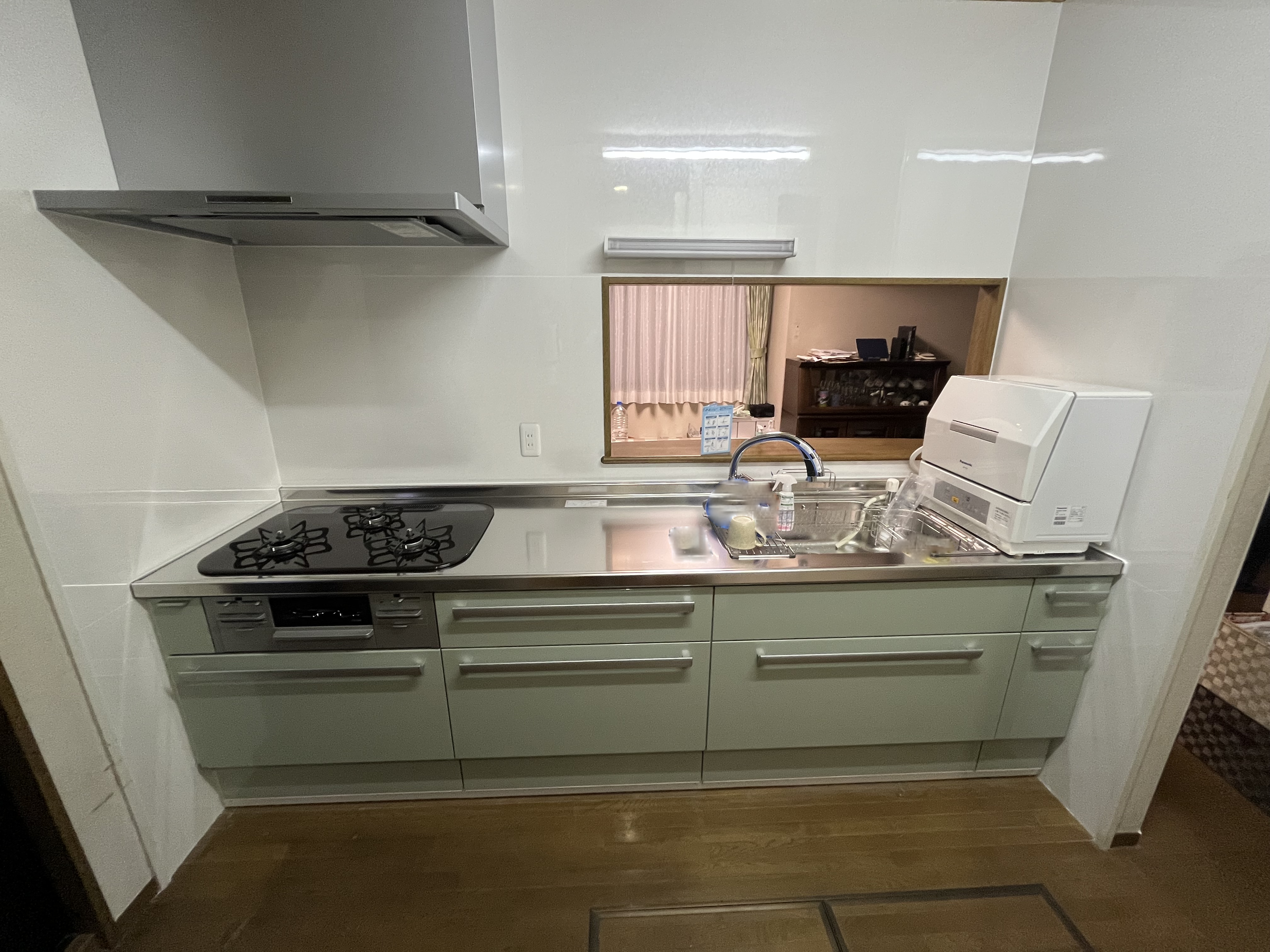 使い慣れたキッチンの勝手は変えず、タッチレス水栓や、お掃除のラクなよごれんフードなど最新機種のシステムキッチンへ入替えました。キッチン本体の大きさは変わりませんが、リシェルの特徴であるらくパット収納により、使いやすく収納量も格段に増えました。