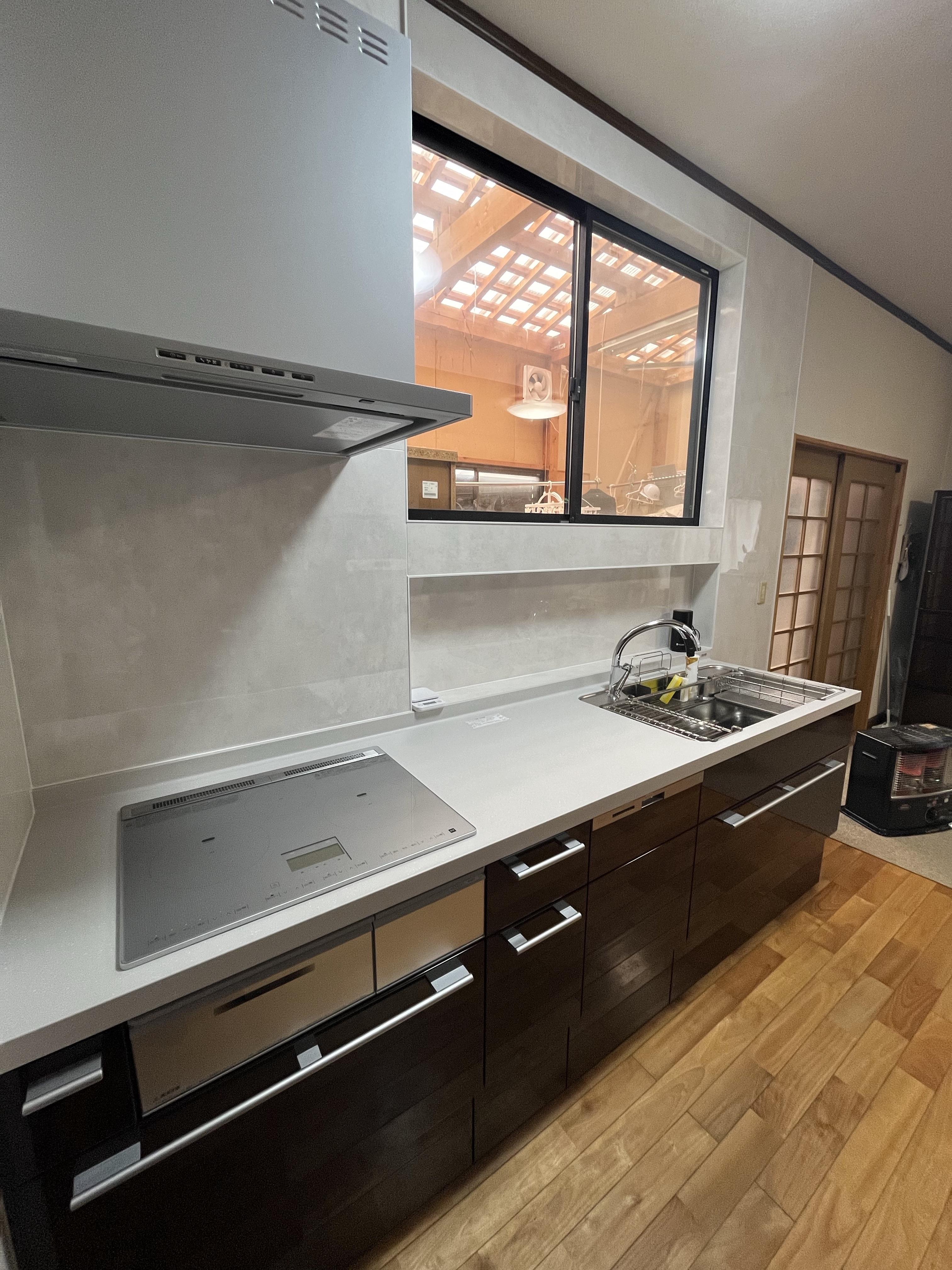 深型の食洗機やハンズフリーの水栓、2段のレーンでシンクとプレートを立体的に活用できるひろびろWサポートシンクなど、機能の充実したシステムキッチンへ入替えました。また、汚れの気になっていた木の窓枠は、キッチンパネルでくるみ、スッキリお掃除もしやすくなりました。(システムキッチン:リシェルSI)