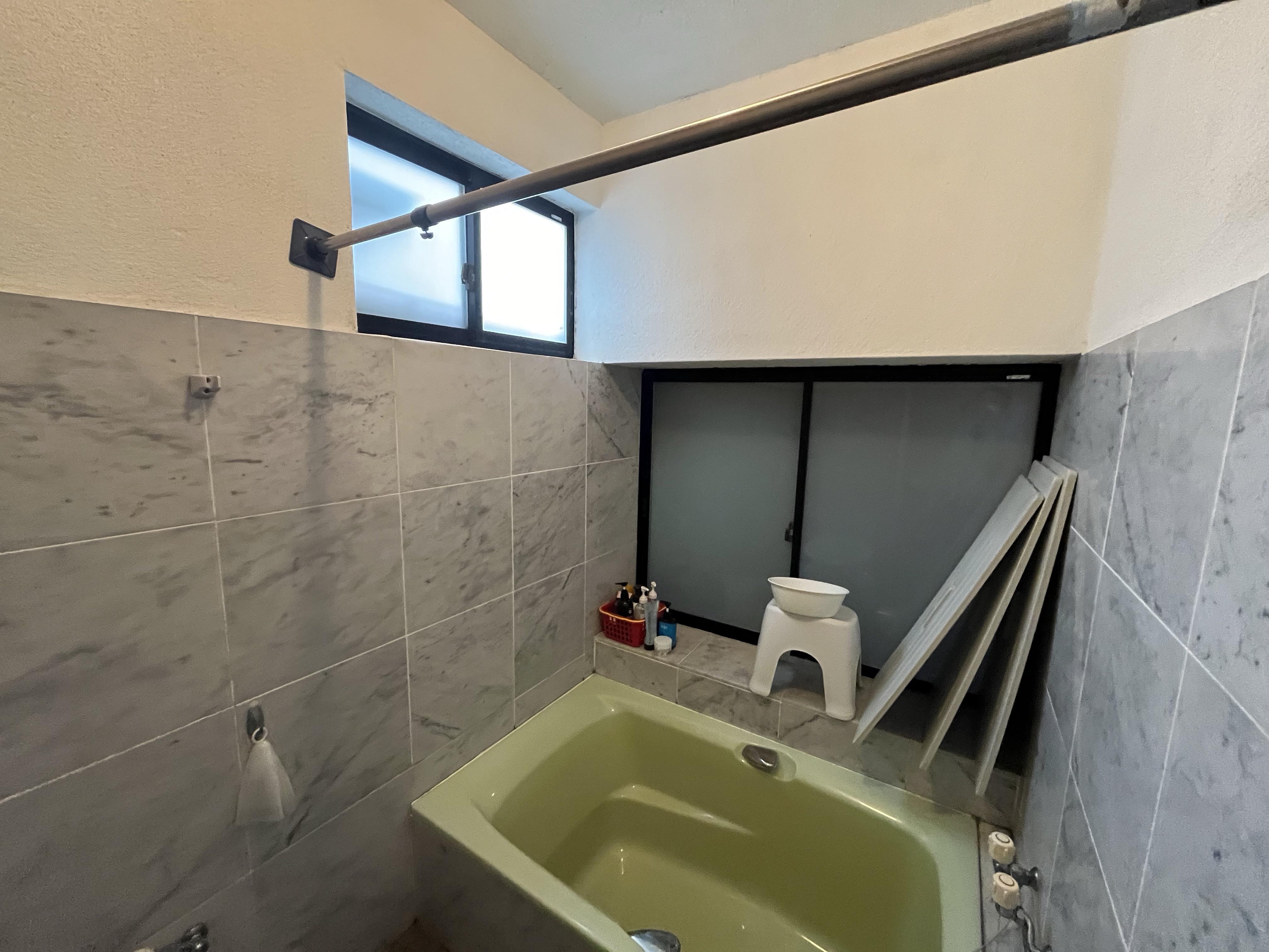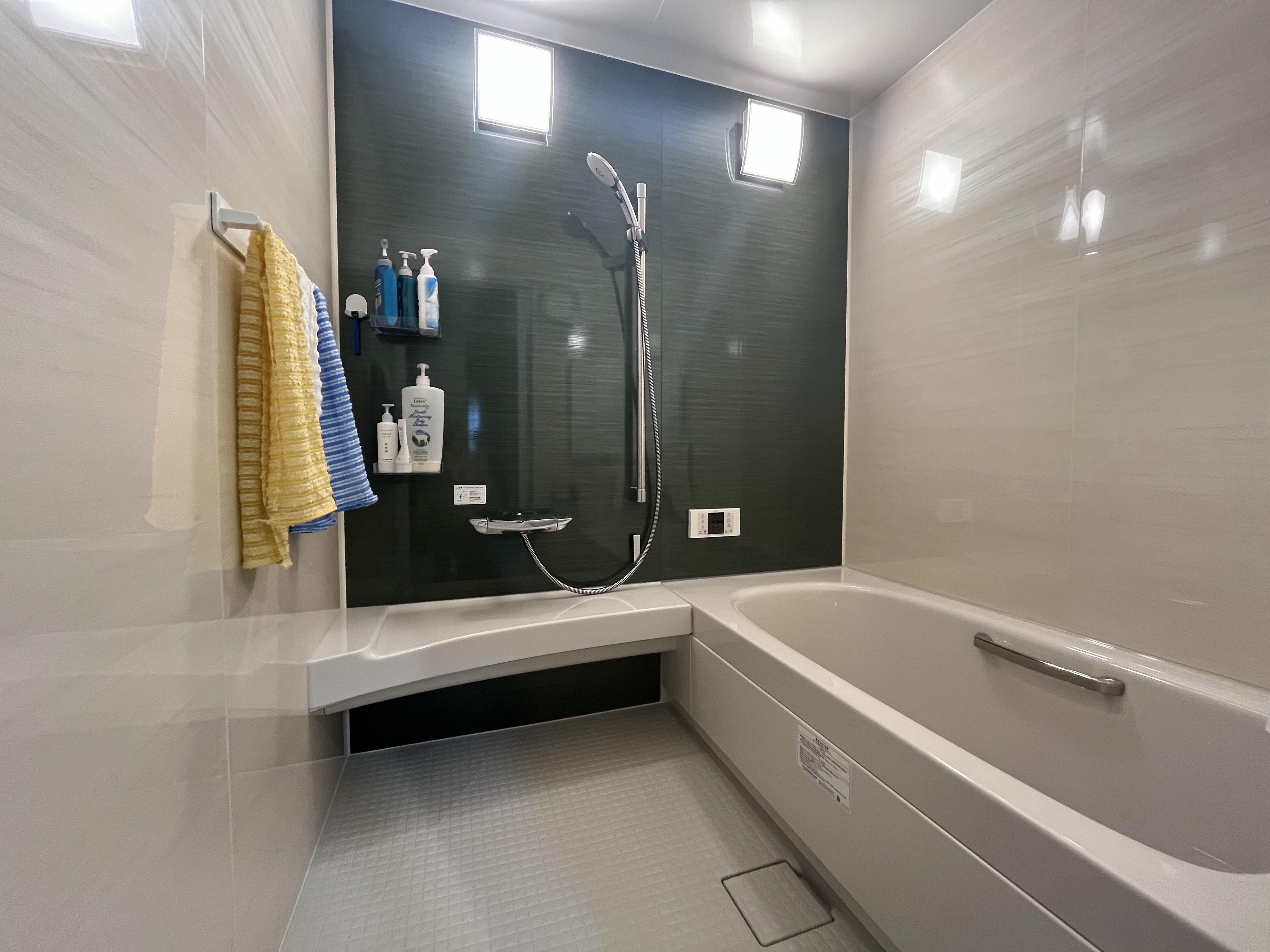 大きな浴室は不要とのことでしたので、1.25坪の在来浴室から、少し小さい1618のユニットバスへ入替えました。天井壁床まるごと保温のユニットバスで寒さ対策もバッチリです。(ユニットバス:スパージュBXタイプ)縮小したスペースは隣の物干し場から使う収納棚へ有効活用しました。