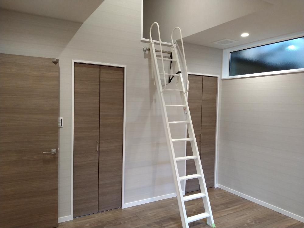 平屋でしたが天井が高かったため、寝室と子供部屋にはロフトを設けました。普段使用しないものの収納場所としても活躍します。ロフトの下は、ご夫婦二人の衣類が余裕で収納出来るウォークインクロゼットになっています。