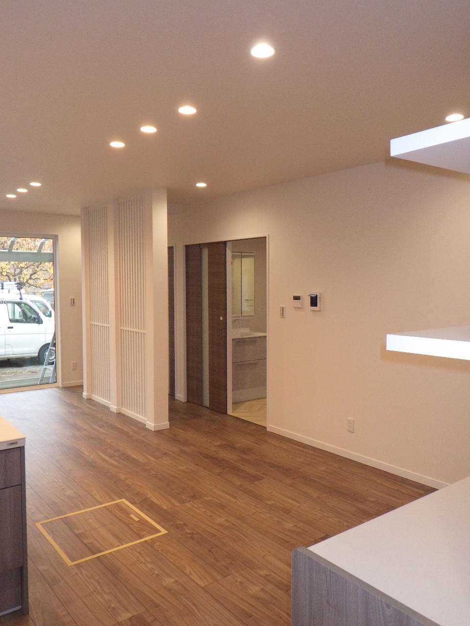 築50年以上経っている平屋部分には基礎が無く、石の上へ柱が乗っている構造でした。まず基礎を新設し、壁もほぼ無い状態でしたが耐力壁を増やし、瓦屋根も軽い屋根へ葺き替え、耐震性能をUPさせました。断熱材も無い建物でしたので、床壁天井全てに高性能の断熱材を入れ、窓も断熱サッシへ入替えました。いろいろと難しい案件で、工期も長くなりましたが、見違えるようなお宅になり、お客様にも大変喜んでいただきました。(増田)