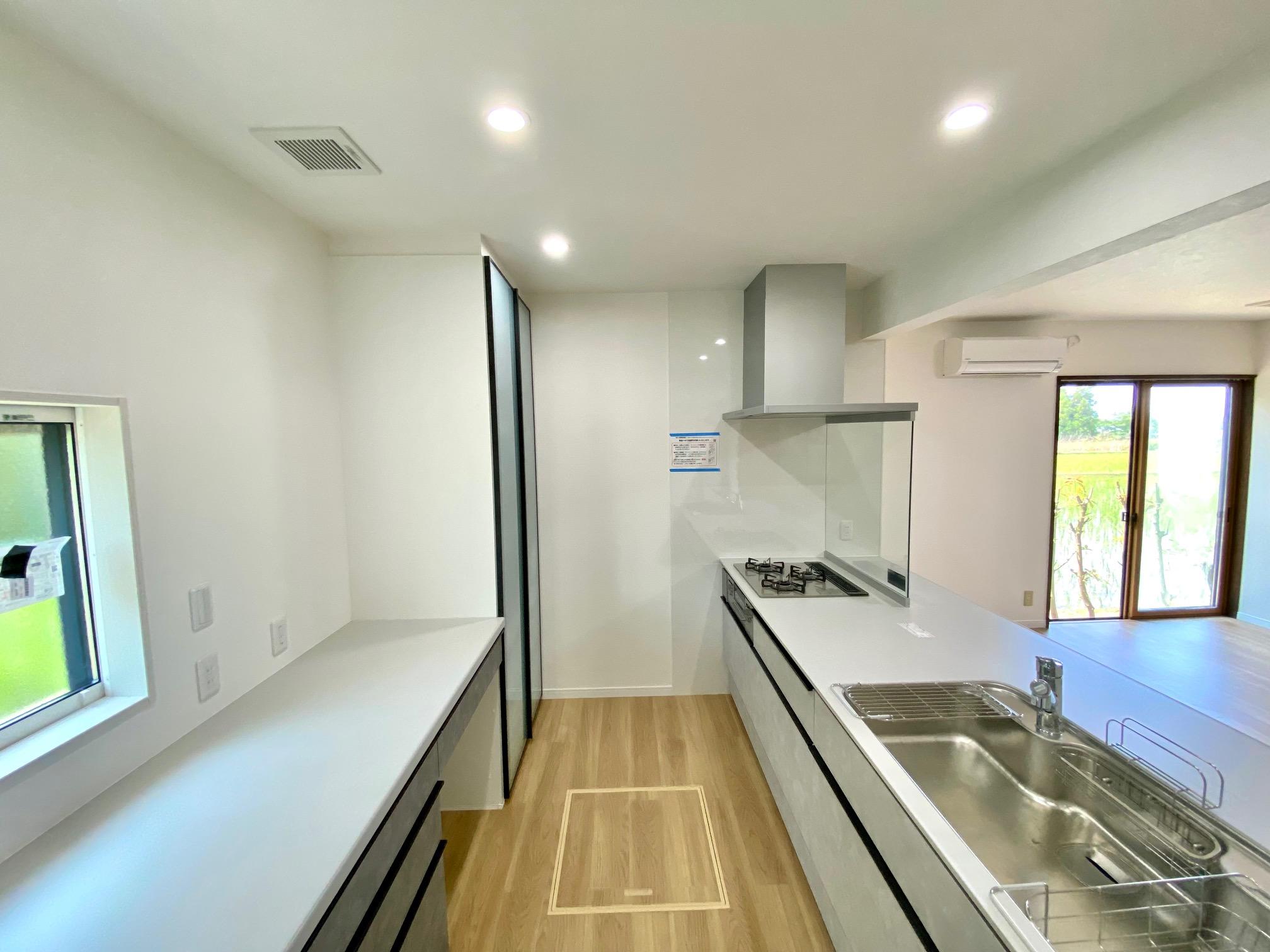 西側に面したキッチンは、夏は暑く、特に冬は寒い中での家事は大変な様子でした。また、断熱材が全く入っていない状態でしたので、天井・壁・床と高断熱の断熱材を施工し、西側の窓は縮小し断熱サッシに入替え、キッチン空間をすっぽりと囲むように断熱化しました。明るく笑顔あふれるキッチンになり、大変喜んでいただけました。