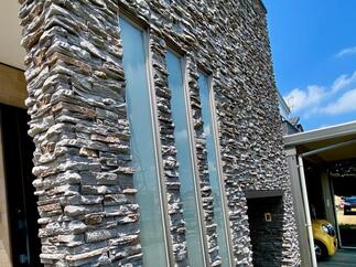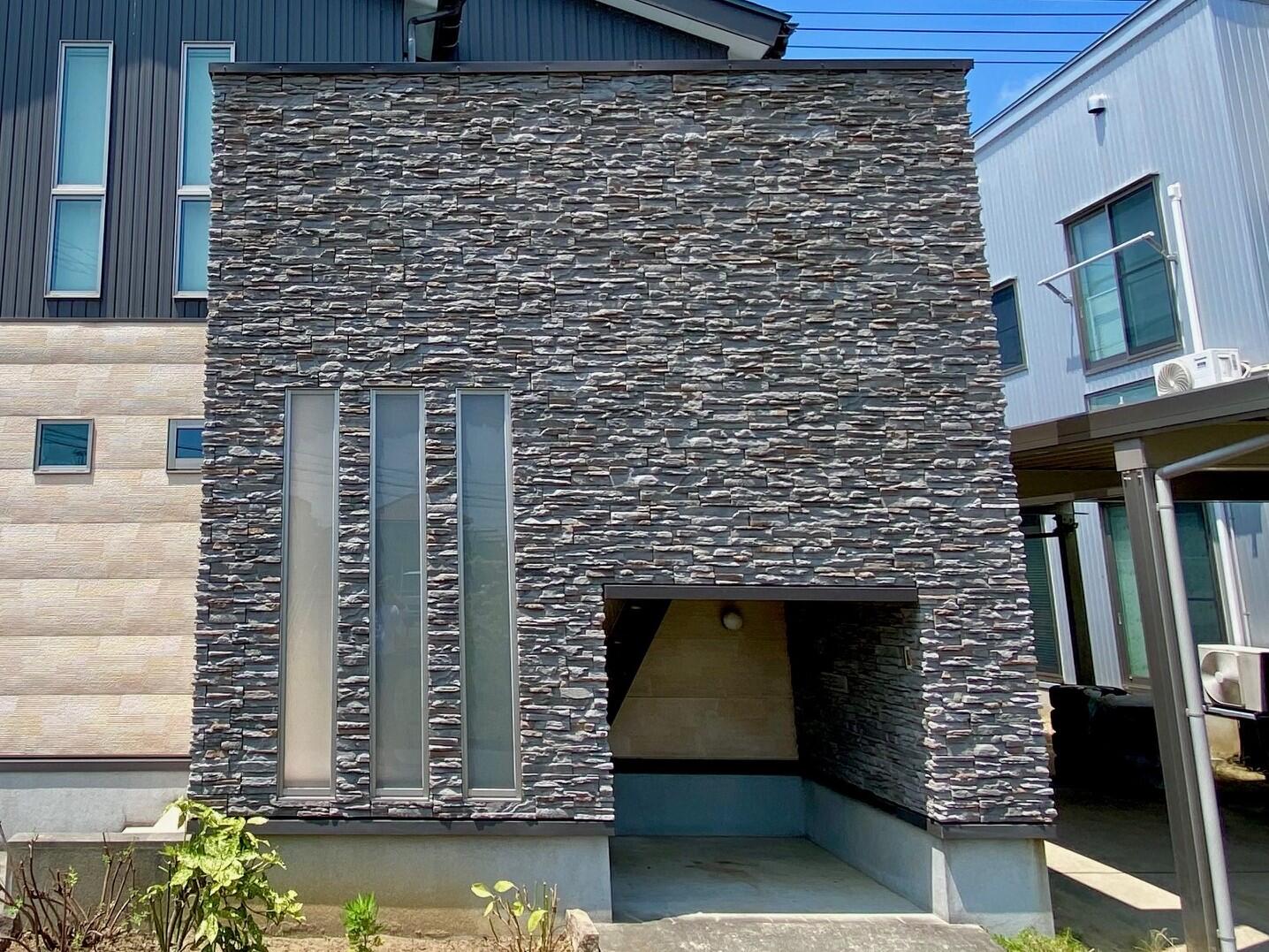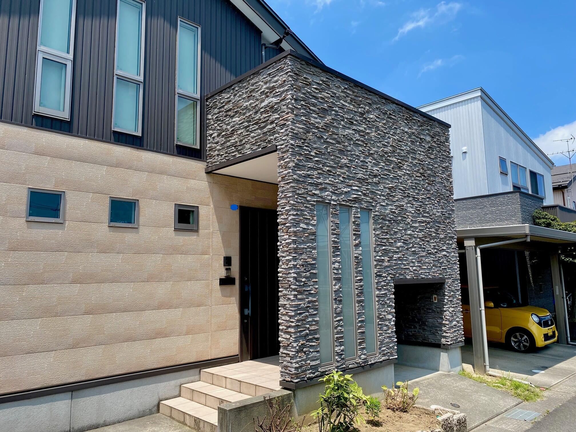 玄関まわりの外壁が傷んでおり、相談のためLIXILショールームにご来館されたことがきっかけでした。既存の外観デザインが気に入っているため、色合いの似た長持ちする外壁をご希望でした。そこで、長持ちする外壁ということでタイルをご提案、既存の外観イメージを壊さないよう、外壁と似た色のタイルを選定しました。厚みがあり凹凸の大きいタイルで、高級感のある玄関まわりになりました。
