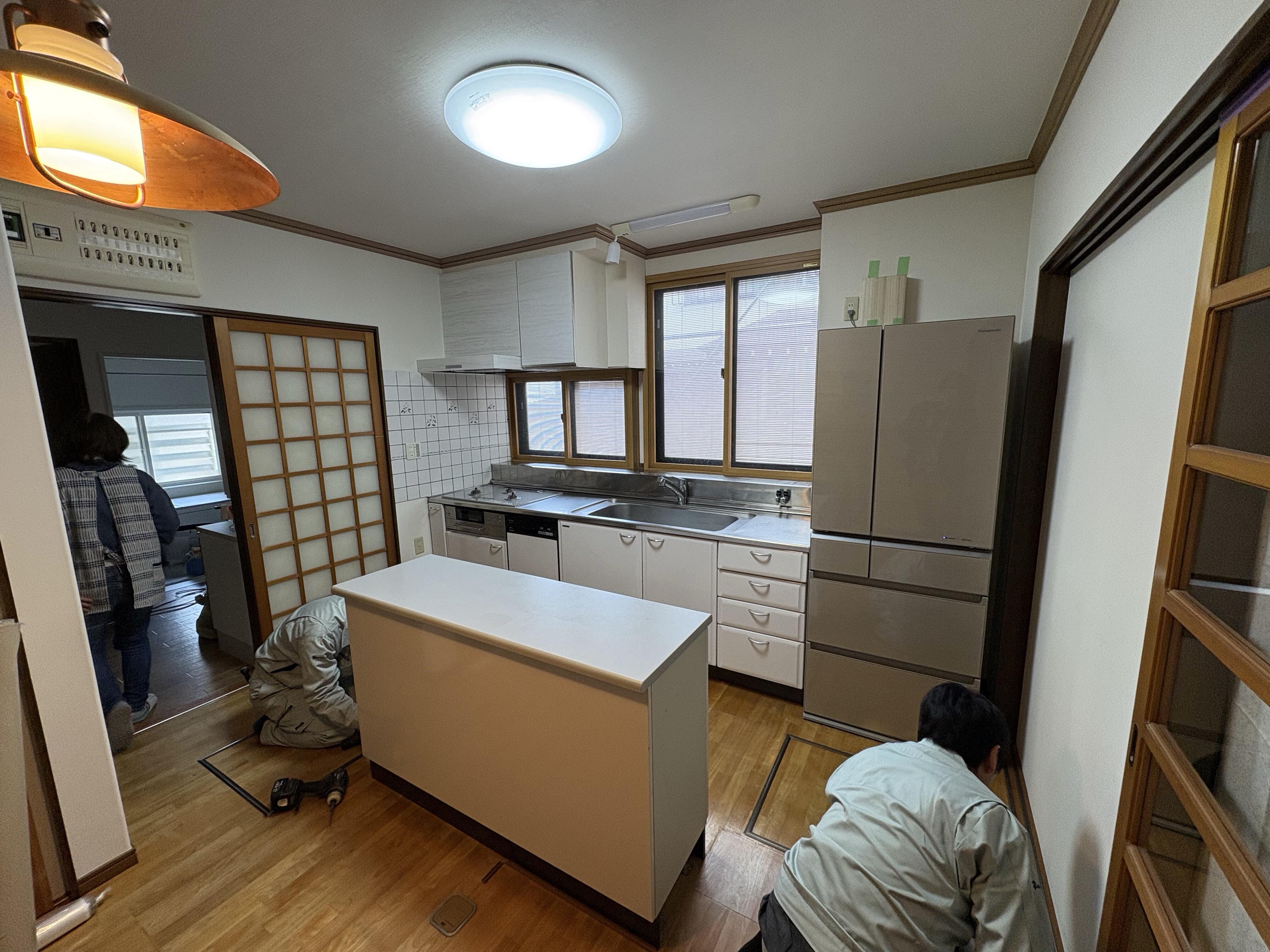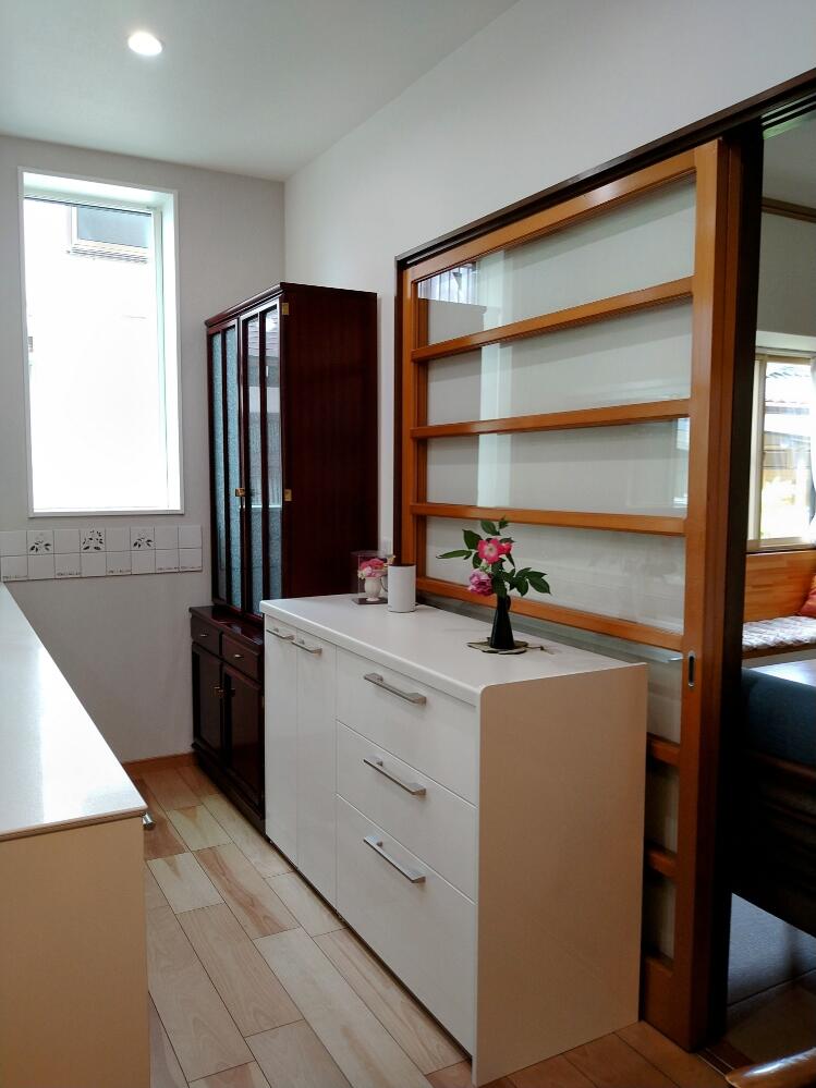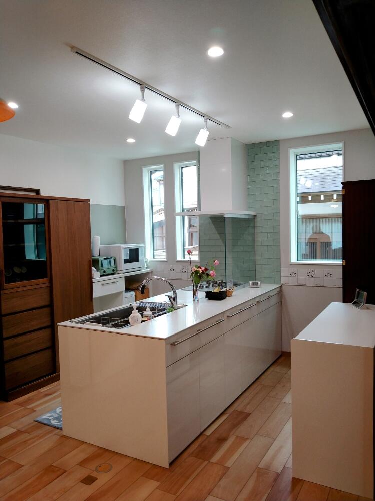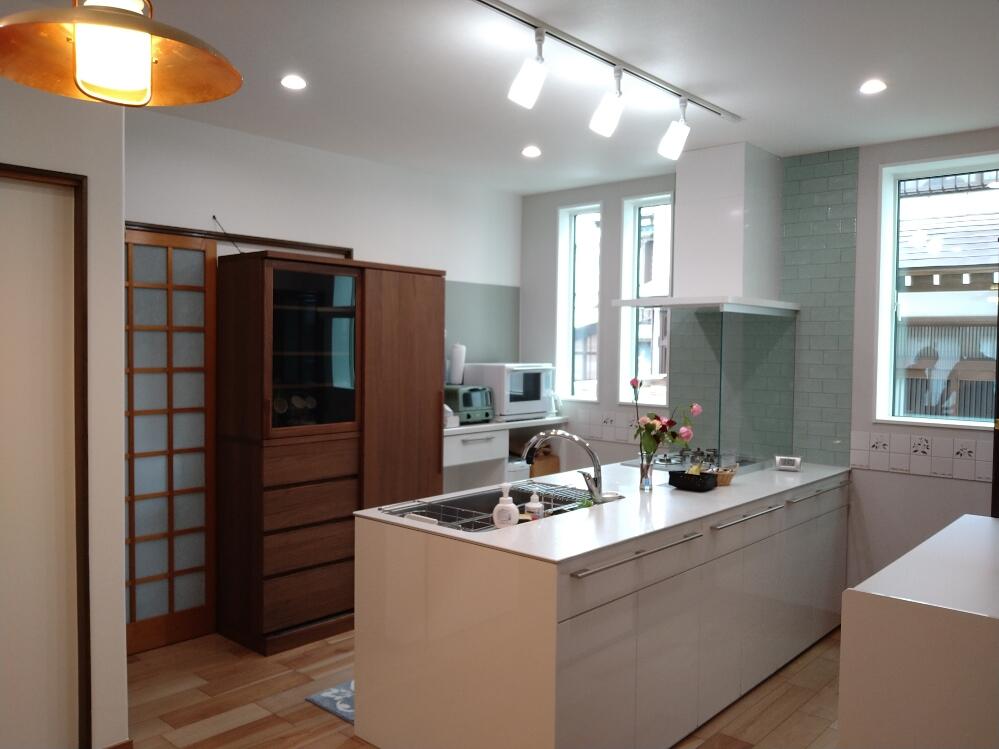 新潟市西蒲区にお住まいのK様。キッチン改装の新規のお客様です。まず第一のご要望として、壁付けのキッチンを出来れば対面にしたい…とのことでした。対面キッチンにするにはスペース的に難しく、増築をご提案しましたが、お隣との兼ね合いもあるので当初は増築はしたくないご希望でした。何パターンかプランをご提案し、何回も打合せを重ね、最終的に60㎝だけ増築するプランに決定しました。少しの増築でも、念願の対面キッチンになり、まだ小さなお孫さんが遊びに来た時も、様子をみながらお料理が出来るようになりました。また、寒さ対策として床暖房、窓はトリプルガラスを採用、床下には断熱材を吹付け、壁天井には高性能の断熱材を入れました。