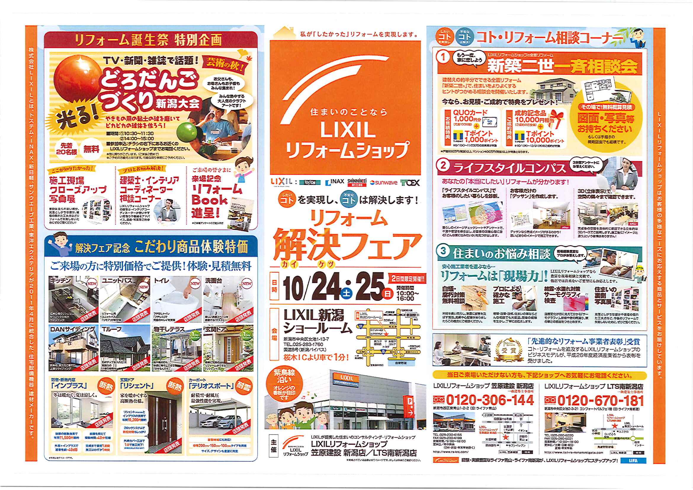 10/24(土)と25(日)の2日間、LIXIL新潟ショールームにて「リフォーム解決フェア」を開催致します。