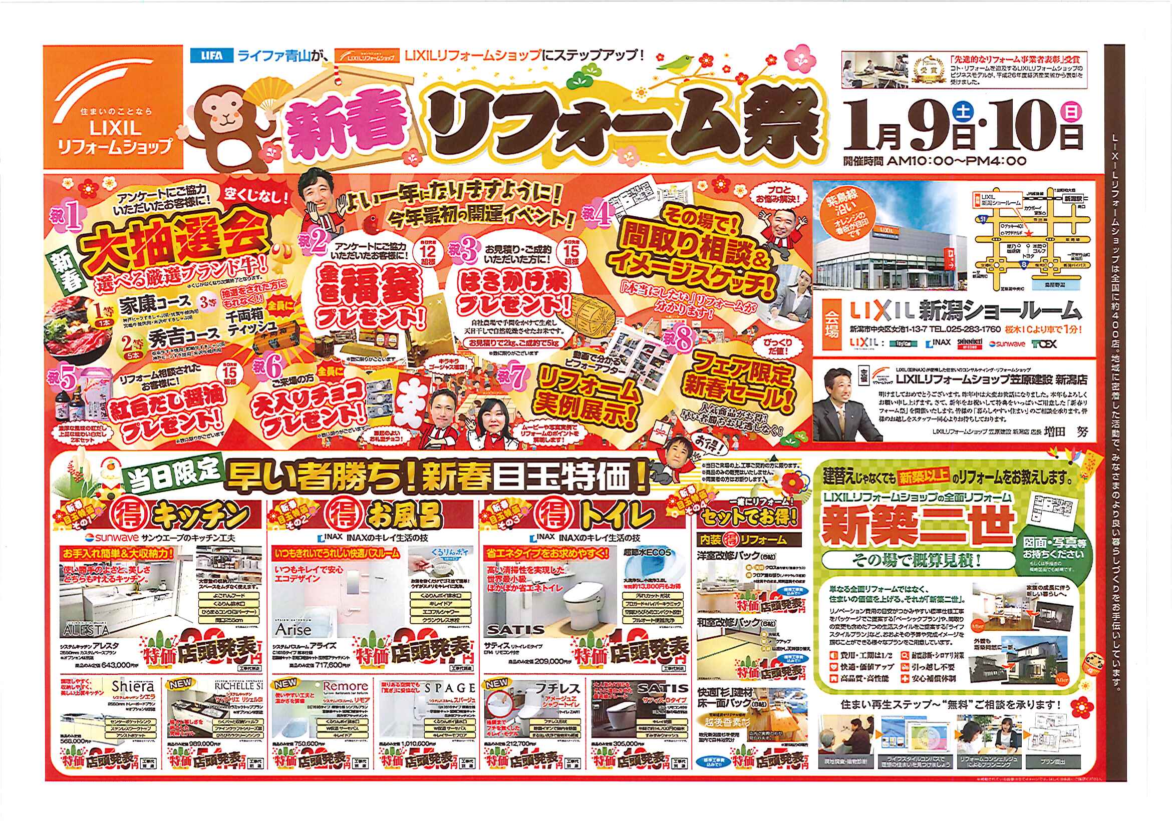LIXIL新潟ショールーム(新潟市中央区女池1-13-7)で2016年最初の開運イベントを開催致します。