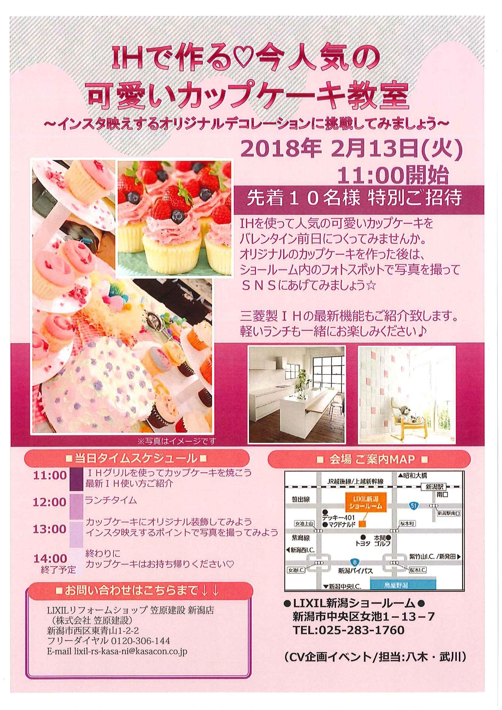 バレンタイン前日の2月13日(火)に、LIXIL新潟ショールームにて、IHグリルを使ったカップケーキ教室を開催いたします。