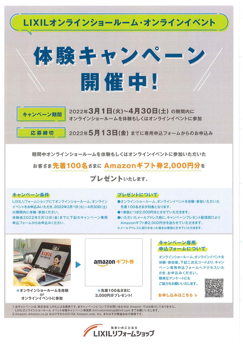 ただいまLIXILでは「オンラインショールーム・オンラインイベント体験キャンペーン」を開催しております。