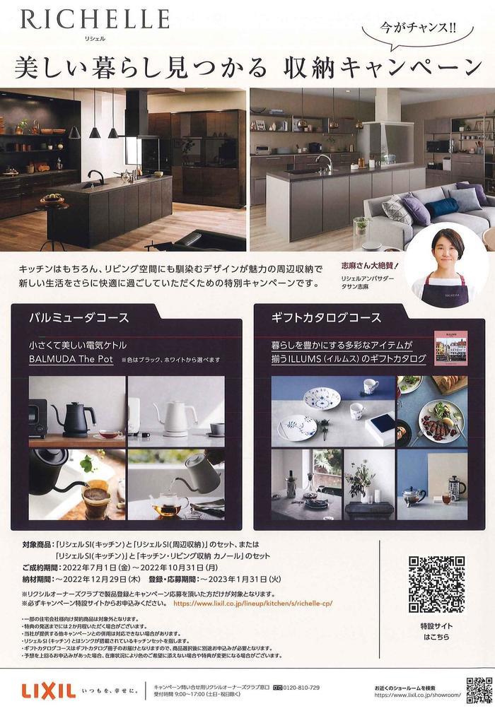 ただいまLIXILでは、RICHELLE 美しい暮らし見つかる 収納キャンペーンを開催しております。
