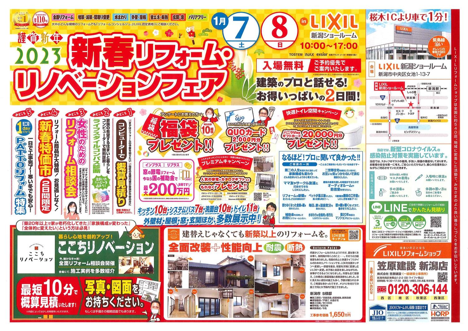 LIXILリフォームショップ 笠原建設 新潟店 では1月7日(土)・8日(日)の2日間
