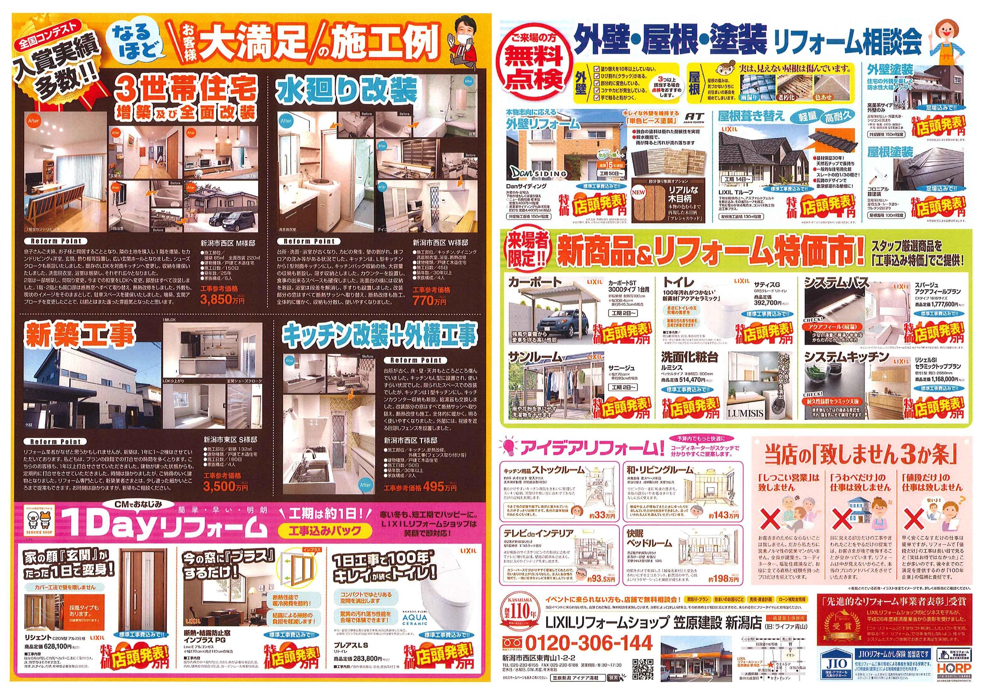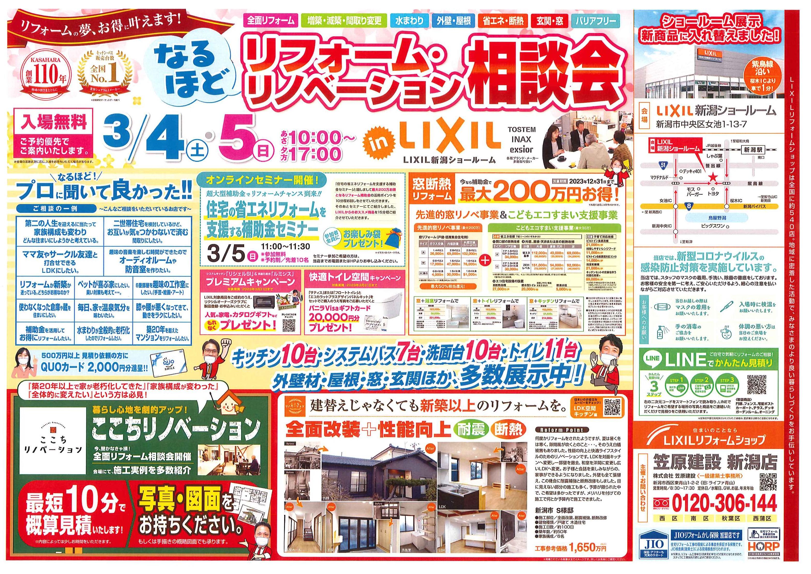 LIXILリフォームショップ 笠原建設 新潟店 では3月4日(土)・5日(日)の2日間