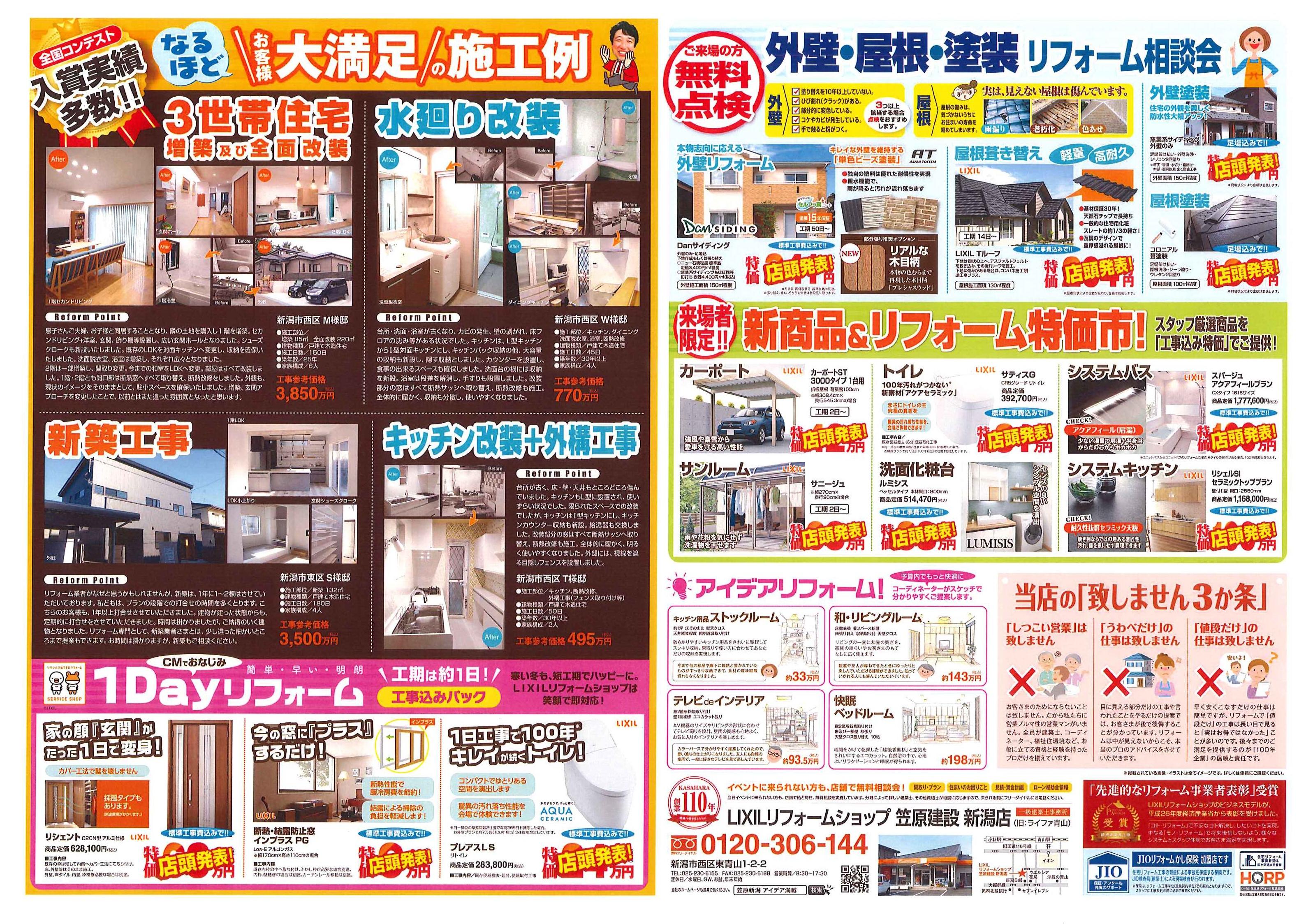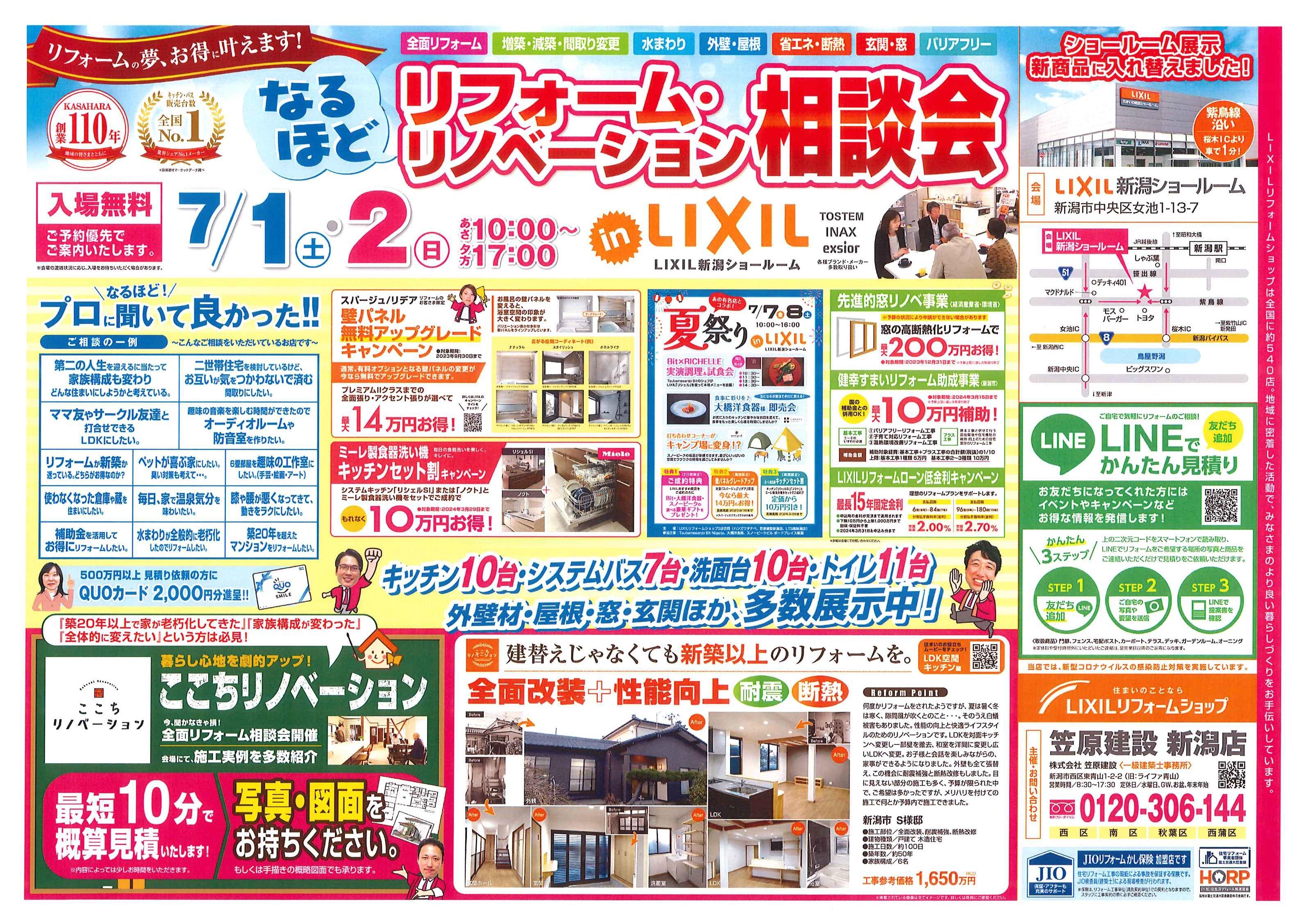 LIXILリフォームショップ 笠原建設 新潟店 では7月1日(土)・2日(日)の2日間