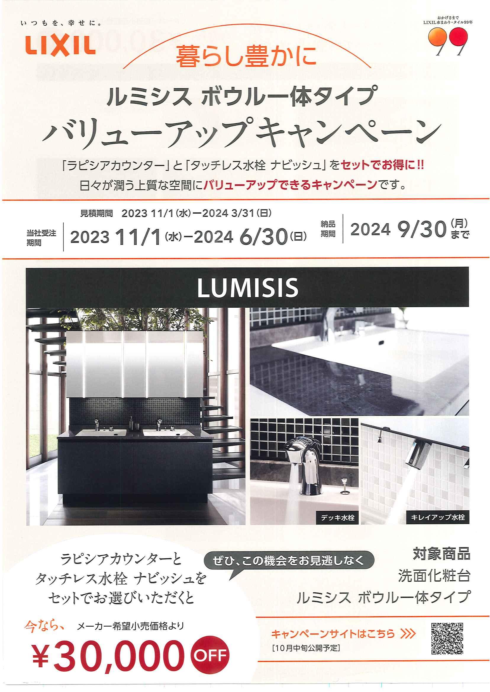 洗面化粧台「ルミシス ボウル一体タイプ バリューアップキャンペーン」