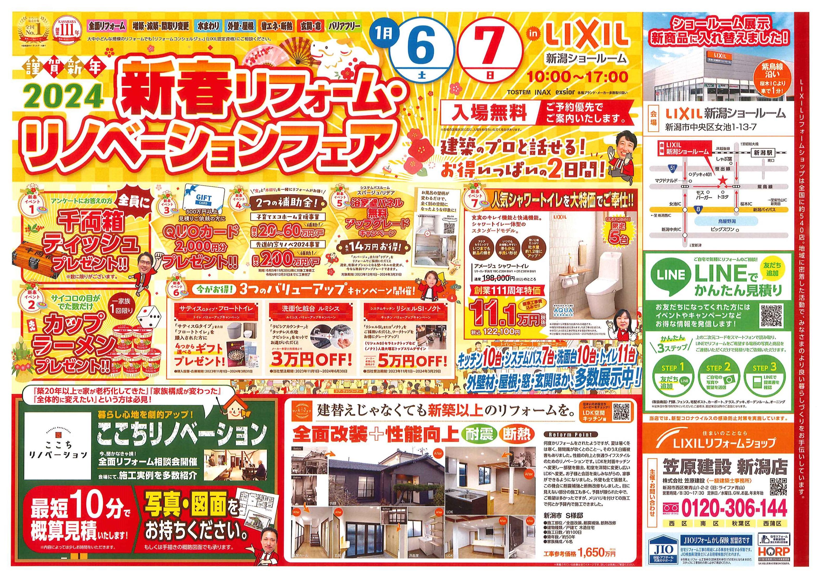 LIXILリフォームショップ 笠原建設 新潟店 では2024年1月6日(土)・7日(日)の2日間
