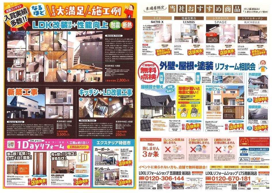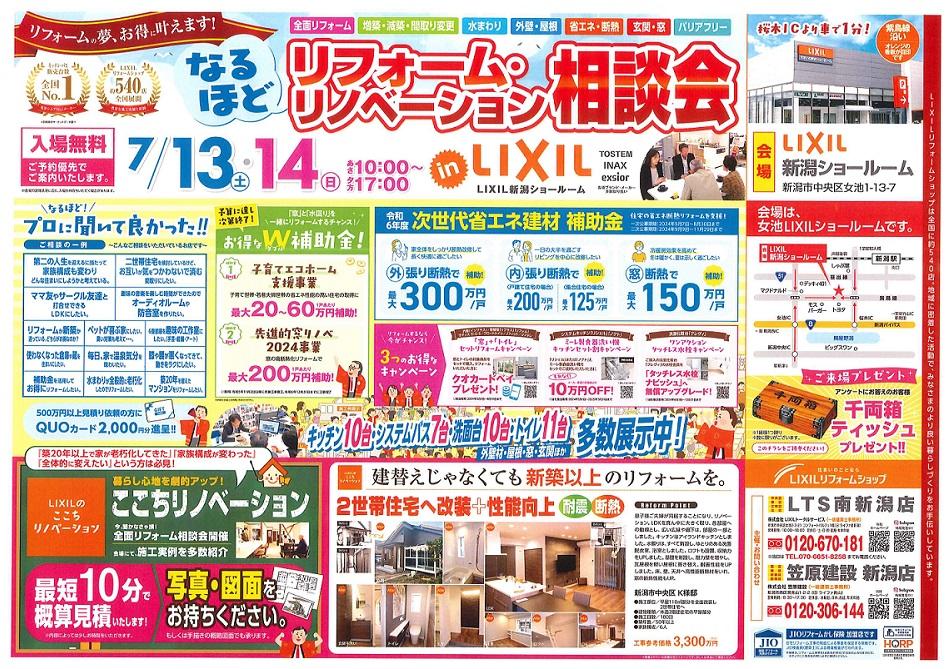 LIXILリフォームショップ 笠原建設 新潟店 では7月13日(土)・14日(日)の2日間
