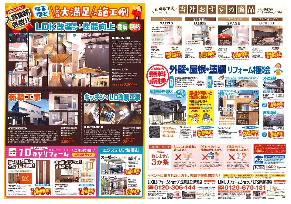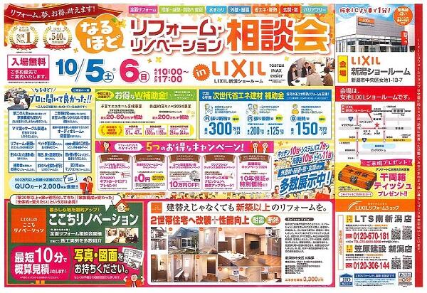 LIXILリフォームショップ 笠原建設 新潟店 では10月5日(土)・6日(日)の2日間