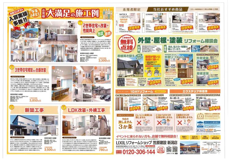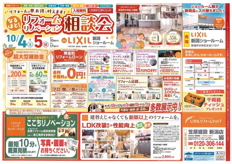 LIXILリフォームショップ 笠原建設 新潟店 では10月4日(土)・5日(日)の2日間