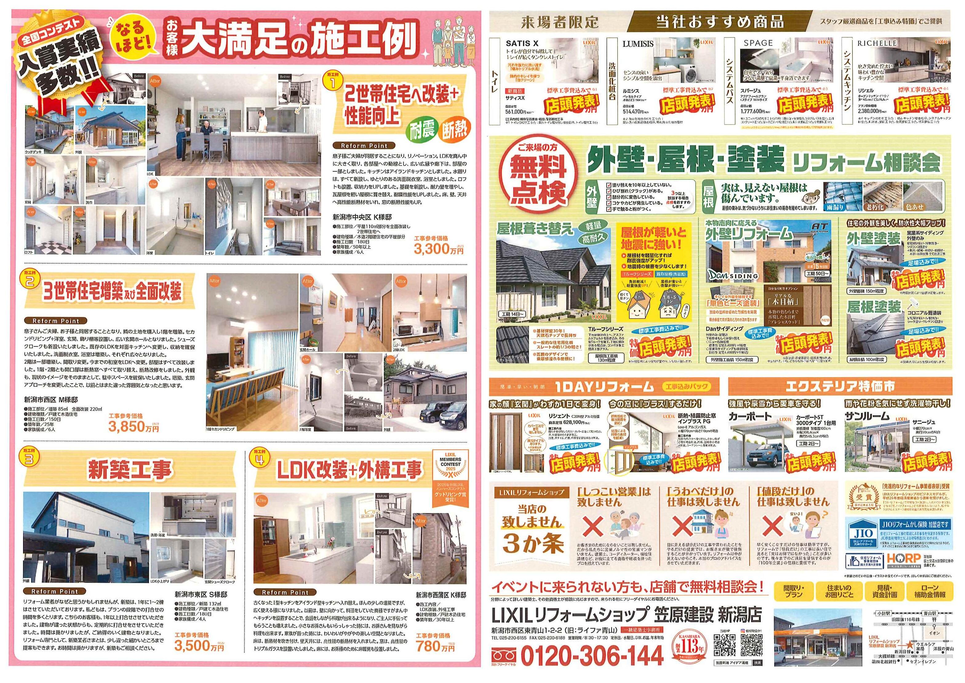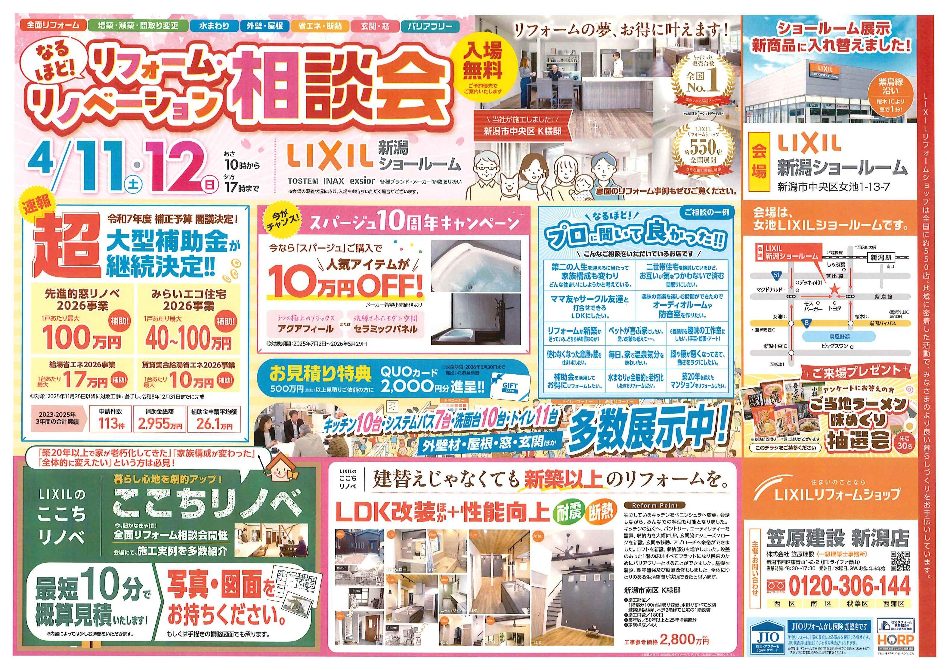 LIXILリフォームショップ 笠原建設 新潟店では、4月11日(土)・12日(日)の2日間 LIXIL新潟ショールームにて「なるほど!リフォーム・リノベーション相談会」を開催いたします。もちろん入場は無料です!ご予約なしでもご入場いただけますが、会場が混み合う場合、お待ちただくことがございます。(※ご予約の方優先でご案内させていただきます。)
