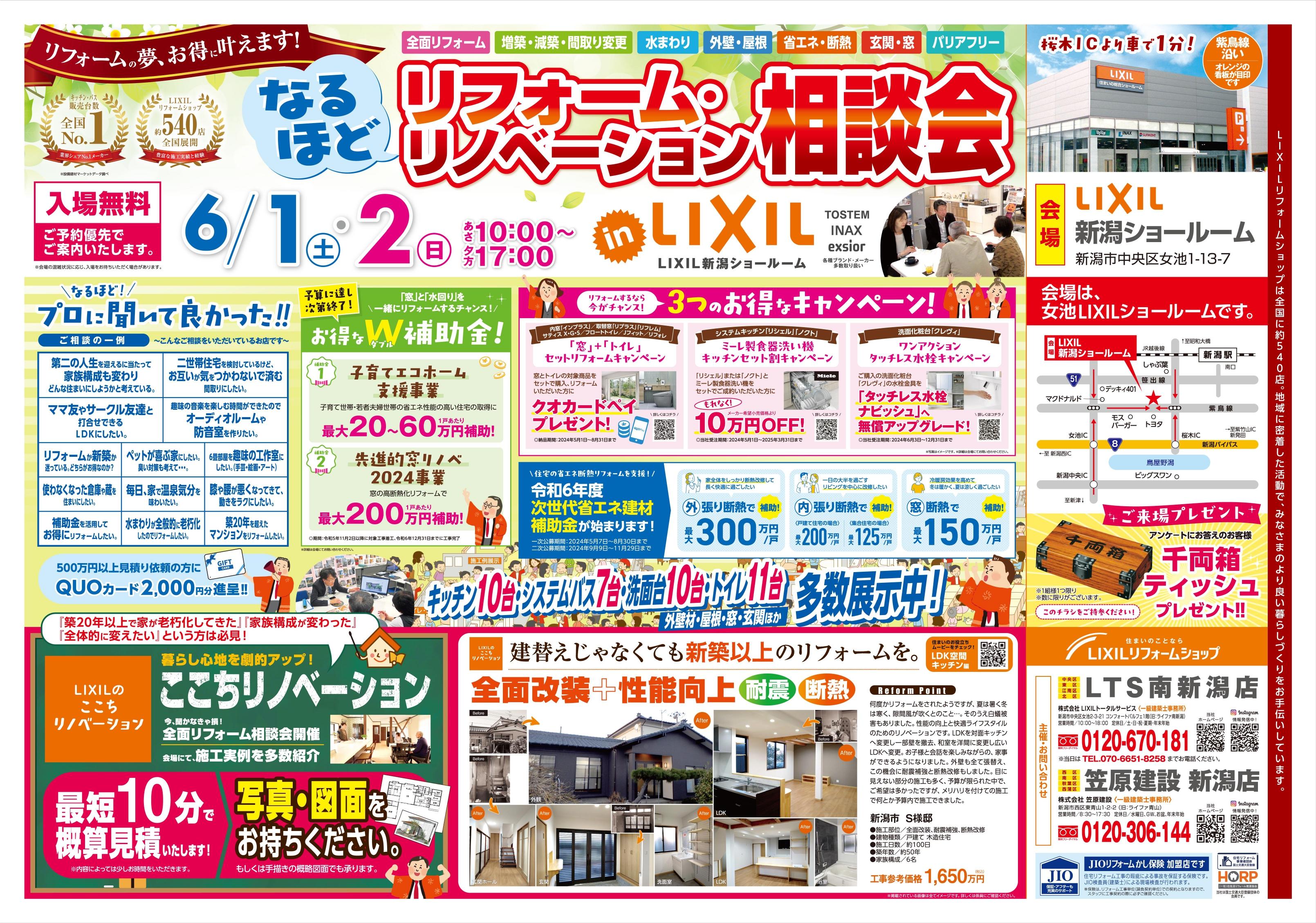LIXIL新潟ショールーム 6月1日(土)、2日(日)リフォームイベント開催する事が決定しました!(*^▽^*)
