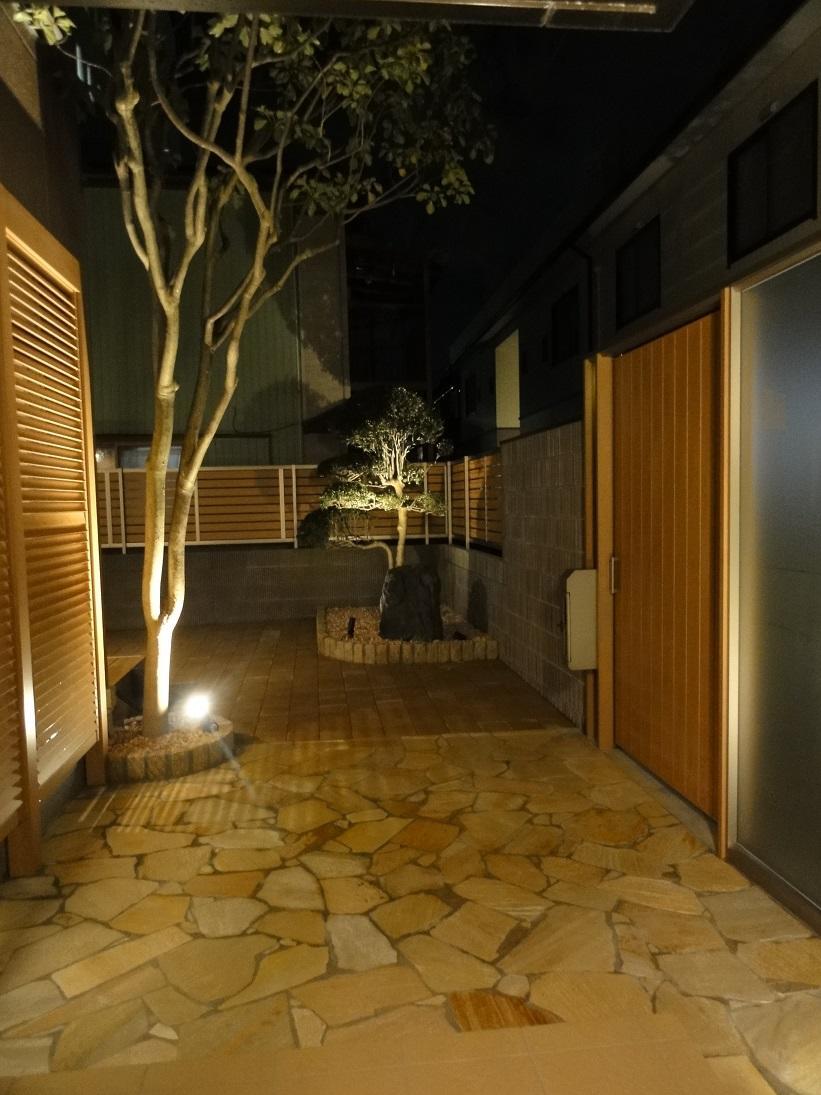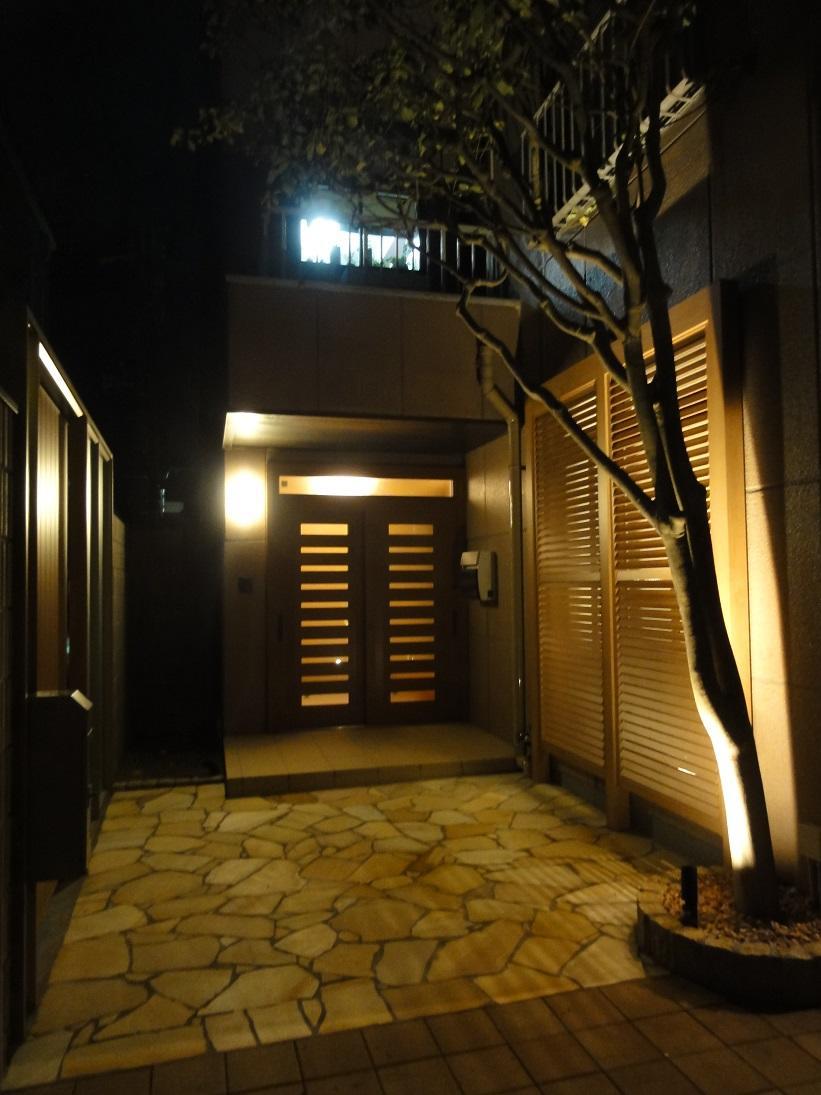 ライトアップされたエントランスとエクステリアで昼も夜も癒される空間を演出しました