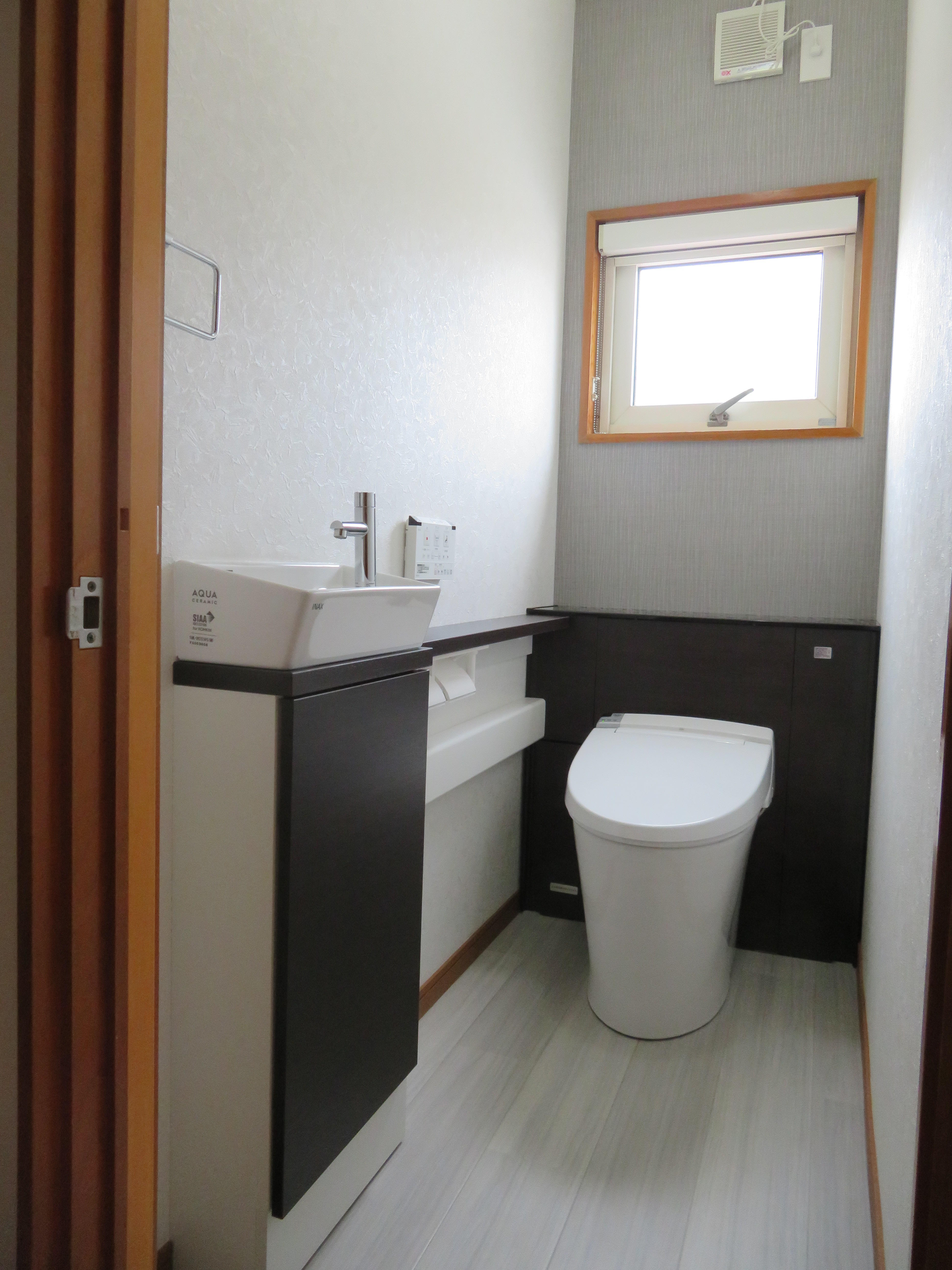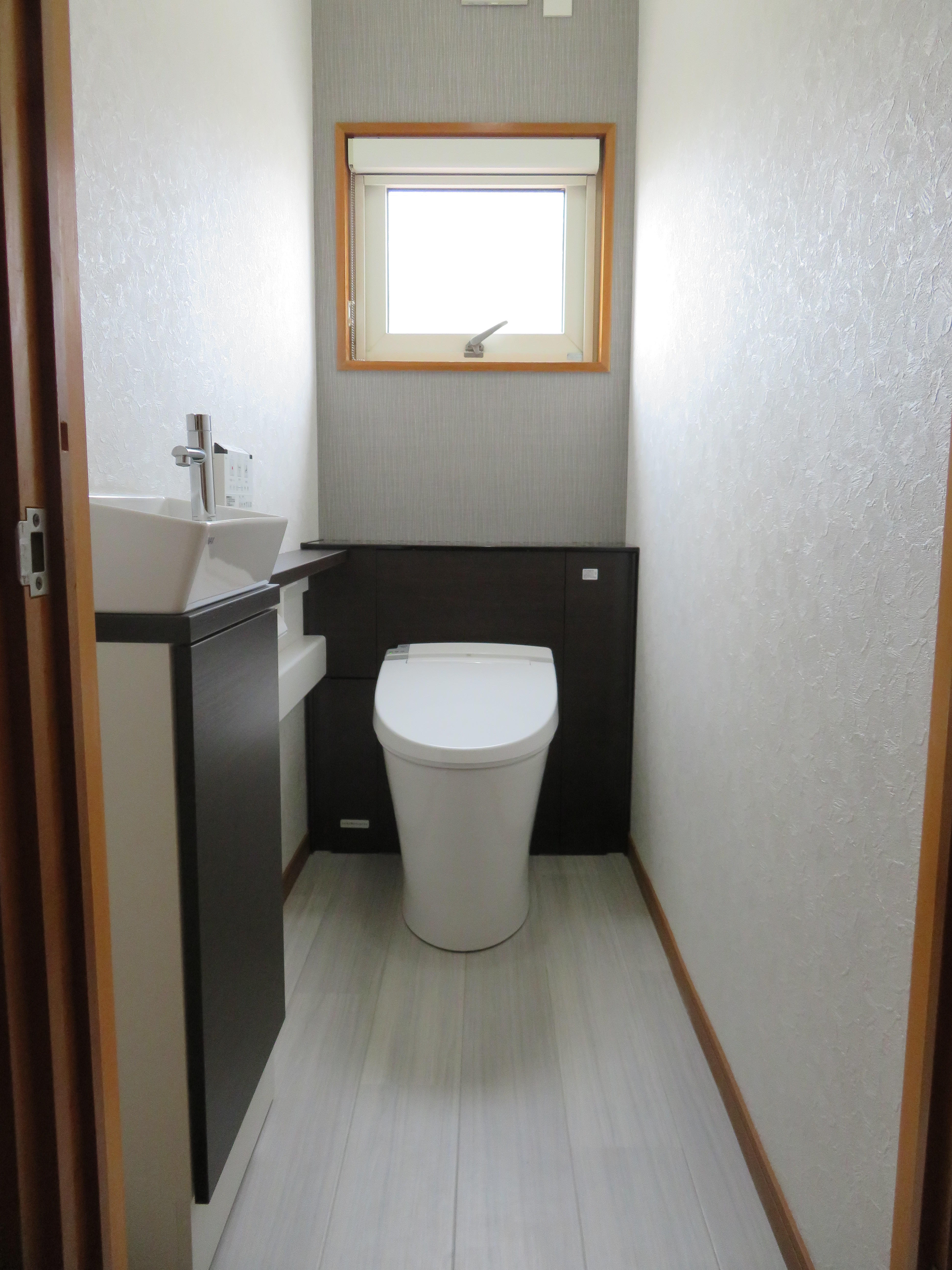 総タイル張りのトイレを最新機能なトイレ変えたい。小さなお子様も使い易いように手洗器が欲しい