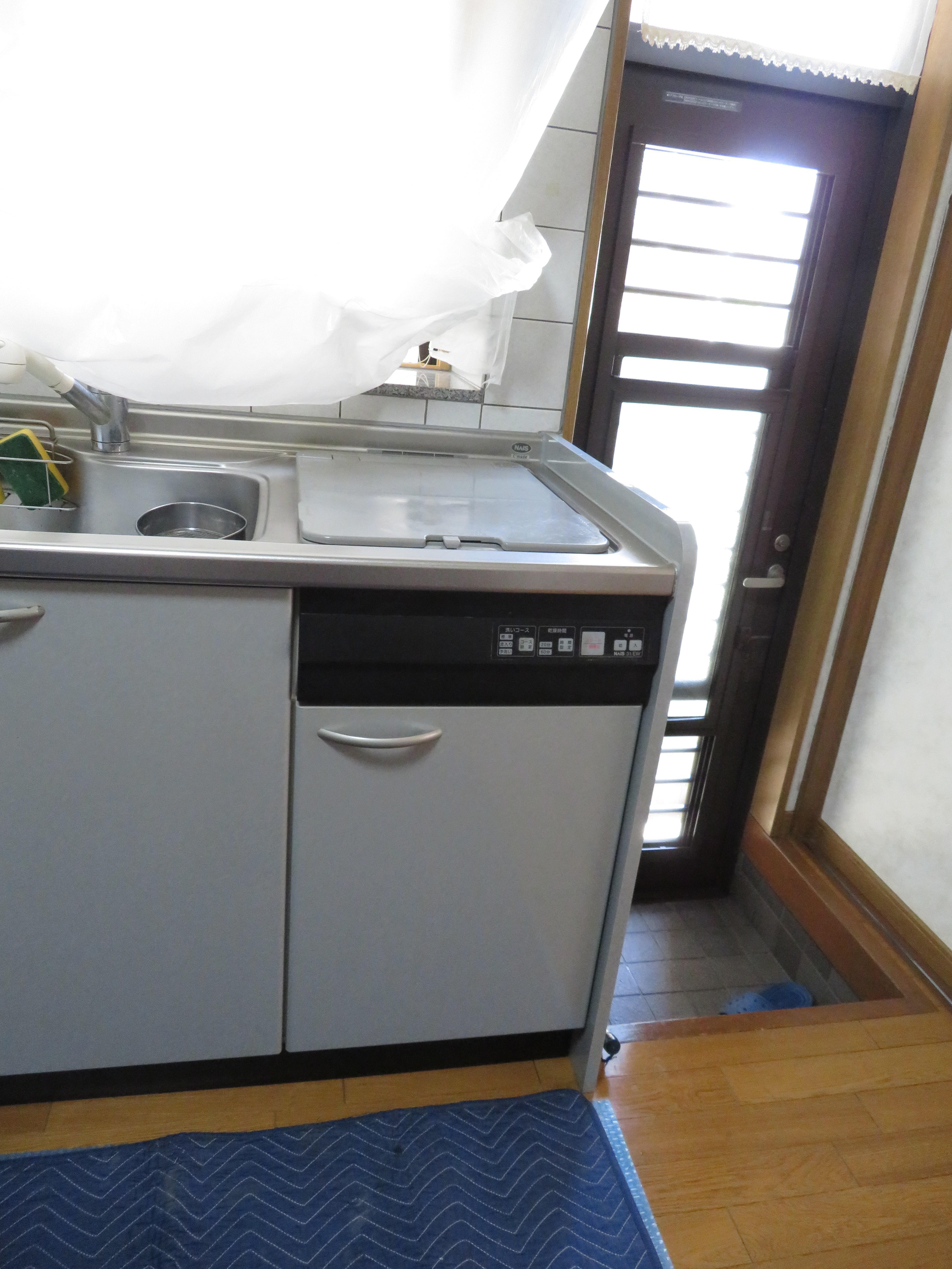 既存トップオープン食洗機からの食洗機のみ交換は出来ないと他社より断られ当社へ現調依頼頂きました。メーカーに確認しましたらトップオープン食洗機から引出タイプ食洗機への交換は部材対応で交換可能がわかり交換完了。今までトップオープンの為キッチン調理スペース狭くなっていた部分が広がりまた、食洗機下へ収納ができ大変喜んで頂きました。
