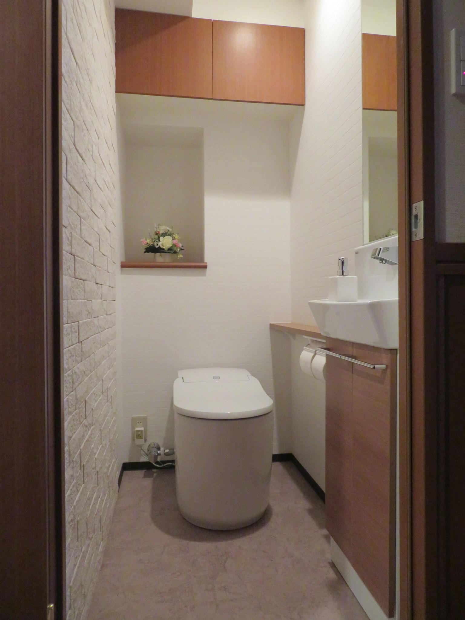 お施主様がセンシアアリーナに一目惚れ。アクセントのエコカラットが洗礼されたグローエのデザインを引き立てています。